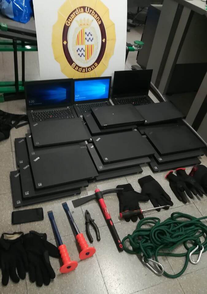 La Guàrdia Urbana de Badalona ha detingut dos homes com a presumptes autors d’un robatori amb força en un edifici d’oficines a la ciutat de Barcelona. Els agents van poder  recuperar, entre altres objectes, una vintena d’ordinadors portàtils sostrets. Segons ha informat la Guàrdia Urbana, durant el seu patrullatge preventiu pel barri de Sant Roc, els agents van observar dues persones dintre d’un vehicle en actitud sospitosa, els quals van intentar fugir en veure el vehicle policial, sent interceptats finalment al carrer Còrdova. En l’escorcoll del vehicle es van trobar 20 portàtils, així com tota mena d’estris utilitzats per cometre robatoris. Gestions posteriors van determinar que portàtils havien estat sostrets a Barcelona. Recuperats altres objectes procedents de robatoris a altres poblacions Àrea Metropolitana de Barcelona.