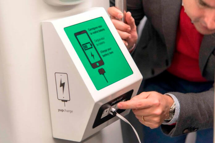 Dos trens de la línia 2 de metro, que va de Badalona Pompeu Fabra al Paral·lel, han incorporat carregadors de dispositius mòbils d’alta potència que els usuaris poden utilitzar gratuïtament per reomplir les bateries dels seus dispositius mòbils. Es tracta de la segona part de la prova pilot que impulsa TMB de la mà de l’empresa catalana Yupcharge, companyia amb deu anys d’experiència en el sector de la càrrega per a mòbils i altres dispositius, per poder valorar si s’amplia més endavant al conjunt de la xarxa de metro de Barcelona.