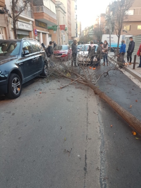 Els Bombers han rebut, aquest dilluns, una desena d’avisos des de Badalona per incidències causades pel fort vent. A Bufalà, al carrer de la Independència, un arbre ha caigut damunt un cotxe sense danys personals, però si materials.