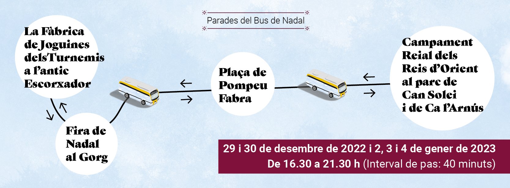 El bus connecta La Fàbrica de Joguines dels Turnemis, la Fira de Nadal al Gorg i el Campament Reial