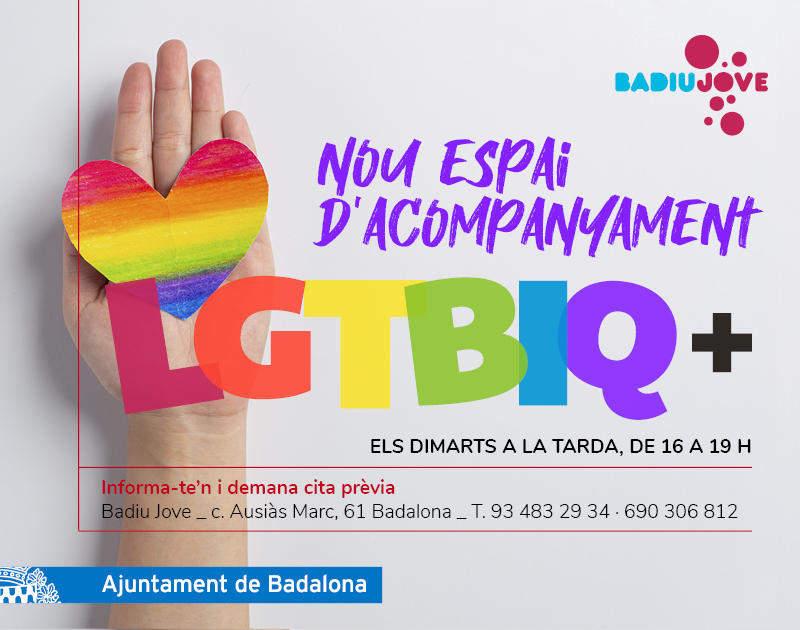 Des d’aquest mes de maig el Badiu Jove de Badalona ha ampliat els seus serveis amb un nou espai d’acompanyament LGTBIQ+. Es pretén donar resposta a l’augment de consultes que es rep a títol individual, o des de centres educatius, entitats i associacions, entorn de la diversitat afectiva, sexual, de gènere i sobre la LGTBIfòbia. El Badiu Jove, situat al carrer d’Ausiàs Marc 61, és un espai de referència per a les persones joves de la ciutat on es concentren diferents serveis i programes amb la finalitat de proporcionar la informació i els recursos necessaris per aconseguir una plena integració social i laboral.