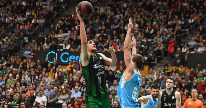 Havia de ser un dia de festa grossa, però el Divina Joventut no ha pogut arrodonir el seu 89è aniversari ni l’estrena del nou videomarcador amb una victòria davant del Cafés Candelas Breogán (81-88). En un Olímpic que feia goig, amb més de 7.000 espectadors, els gallecs, que fins avui només havien guanyat un cop fora de casa en tota la temporada, han aixafat la guitarra als de Carles Duran, que tot i el bon partit de Laprovittola (25 punts i 5 assistències) i Marko Todorovic (20 i 9 rebots) mai no han acabat de girar rodons. Foto: Marko Todorovic contra el Cafés Candelas Breogán / Foto: David Grau
