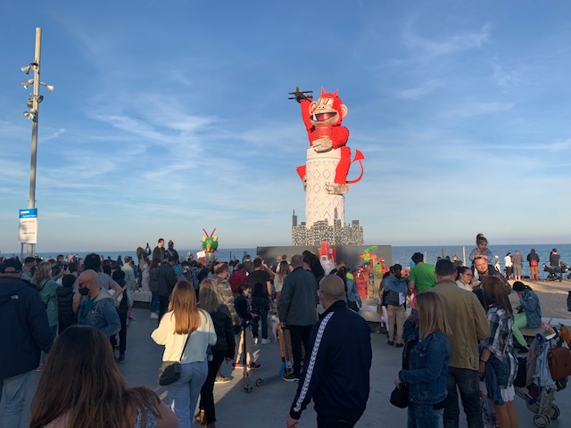 Diumenge 9 de maig i els badalonins i badalonines ens hem llevat amb el dimoni plantat a la platja dels Pescadors. Recordem que l’Ajuntament, per evitar aglomeracions, ha decidit no fer públic ni la nit ni l’hora per cremar el dimoni. De moment, a dues nits per Sant Anastasi, el dimoni “Moníssim” segueix plantat a la platja dels Pescadors rebre milers de persones que cada dia fan fotografies i vídeos. Està clar, però, que li queden poques hores…