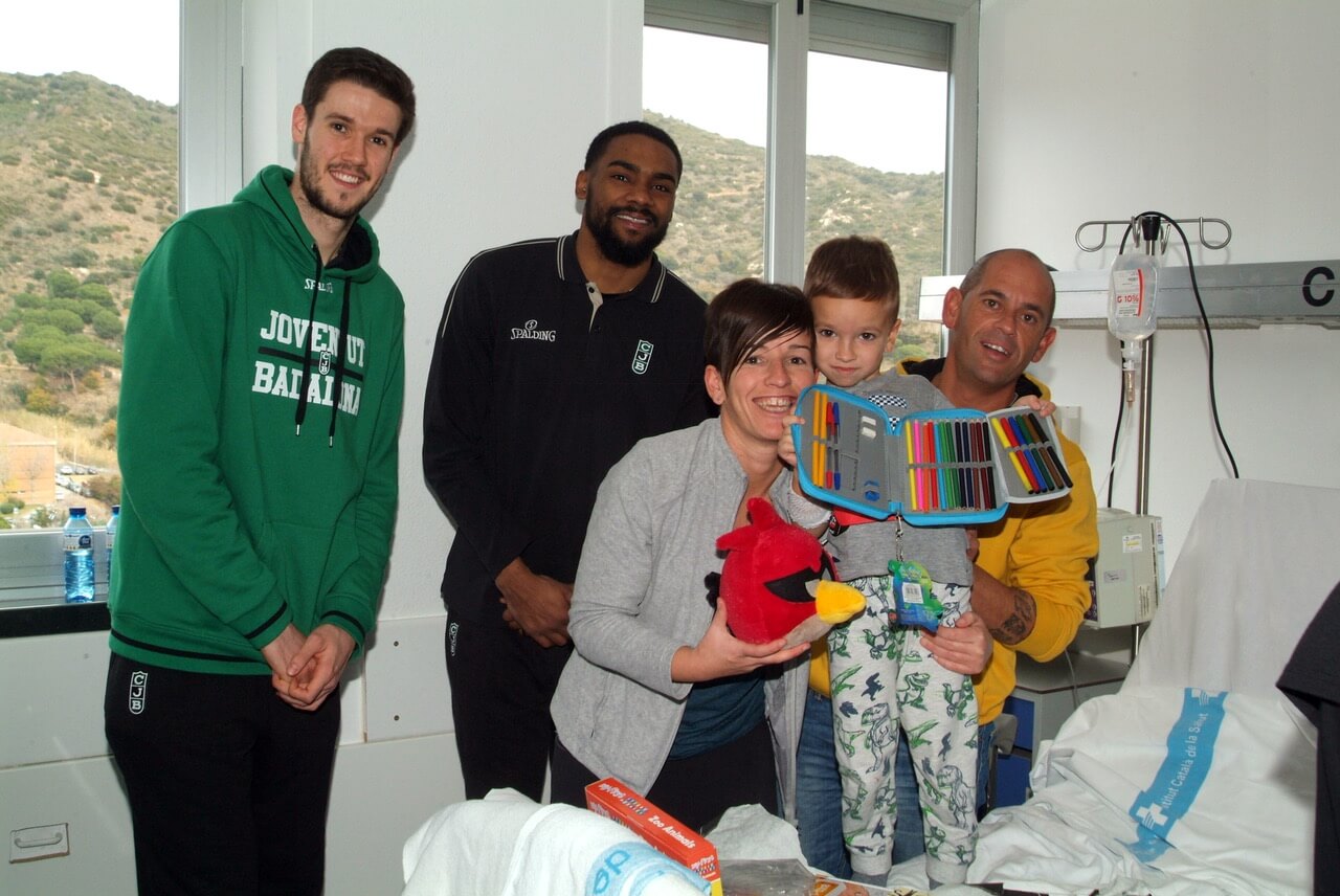 El Divina Seguros Joventut ha visitat amb motiu de les festes nadalenques, els nens i nenes ingressats a la planta de Pediatria de l’Hospital Universitari Germans Trias i Pujol. Jugadors, tècnics i directiva, encapçalats pel president Juan Antonio Morales, han volgut estar un any més a prop dels infants que no poden passar les festes a casa seva i regalar-los ànims, somriures i també alguns presents com pilotes o joguines. A l’acte d’aquest dijous hi ha assistit també Francesc Ribot, el regidor de Salut de Badalona. Uns i altres han estat acollits pel gerent territorial de l’ICS a l’àrea Metropolitana Nord, Jordi Ara; per la directora de l’Hospital Germans Trias, Beatriu Bayés; per l’adjunt a la direcció d’Infermeria, Paco Quílez, i per la cap de Servei de Pediatria, Maria Méndez, entre d’altres. L’ajustat calendari de partits del club badaloní, que ha obligat a avançar una setmana la visita que habitualment es fa la setmana de reis, no ha impedit la trobada entre dos dels emblemes de la ciutat de Badalona, com són el Joventut de Badalona i l’Hospital Germans Trias. La visita ha començat amb la tradicional fotografia a l’entrada de l’hospital, davant de l’imponent arbre nadalenc que presideix el vestíbul. Tota seguit, la comitiva s’ha traslladat a la 7a planta de l’Hospital per donar els obsequis als nens i nenes ingressats, els quals han respost amb alegria i somriures. Finalment, l’acte s’ha conclòs amb un petit parlament dels representats de cada entitat i amb un últim obsequi del club verd-i-negre, aquesta vegada a l’Hospital: una samarreta signada per tots els jugadors i amb l’estampat de ‘Can Ruti’ i el número 18 a l’esquena.