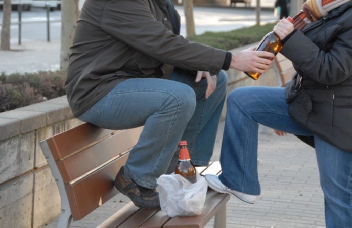 Badalona. Ordenança de civisme. Uns joves consumeixen alcohol a la via pública.