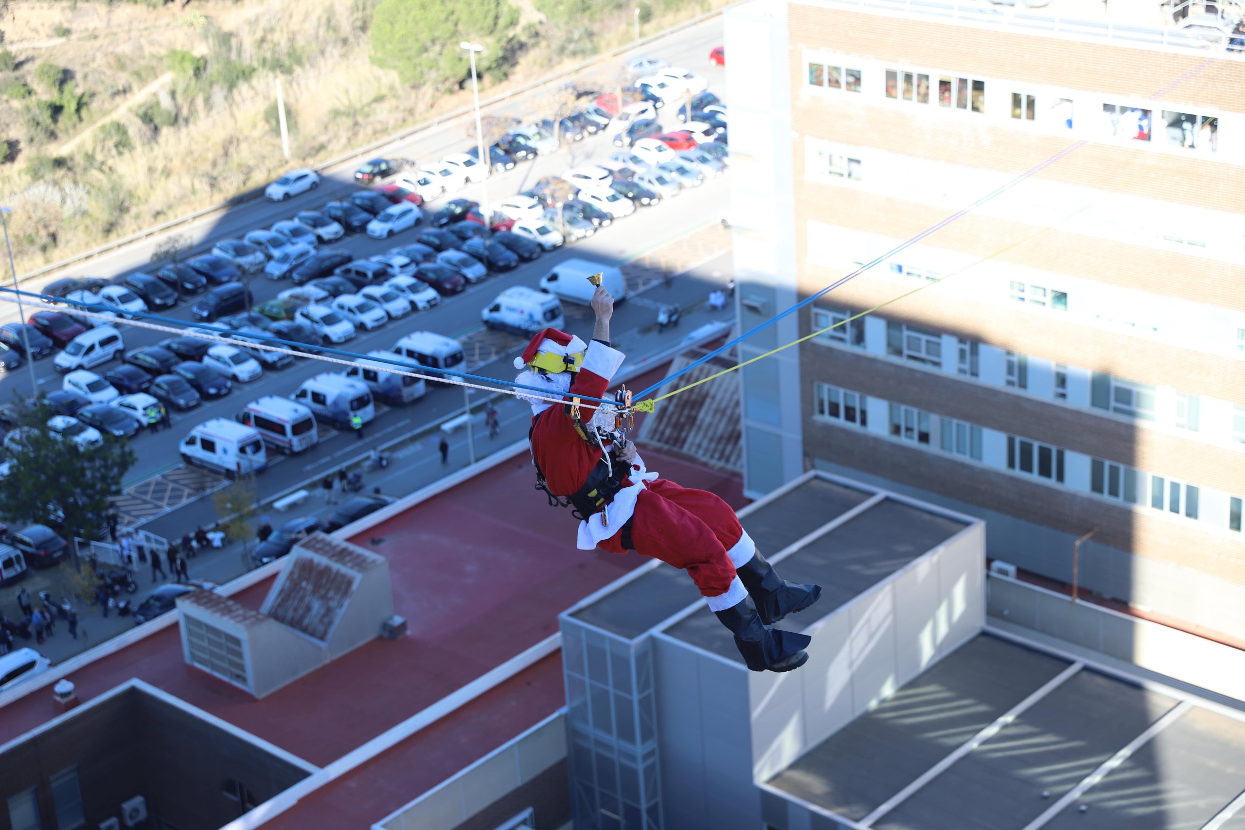 L’Hospital Germans Trias de Badalona ha viscut aquest matí una fita històrica: la d’avui ha estat la primera vegada que el Pare Noel ha arribat amb tirolina a les instal·lacions d’un hospital català. Ha estat en una nova edició de la iniciativa que impulsa la Fundació d’Oncologia Infantil Enriqueta Villavecchia, i que ha comptat amb el suport de Bombers Solidaris de Barcelona i, enguany, també amb la col·laboració dels Bombers de la Generalitat del parc de Badalona.