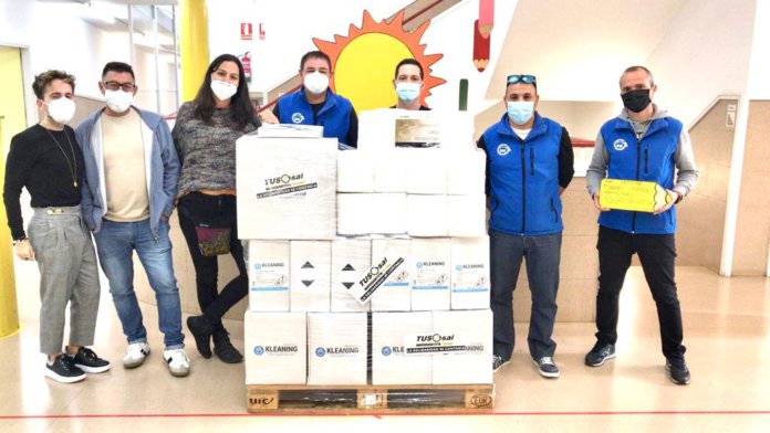Aquest dijous, coneixedors de les necessitats que estan patint moltes escoles públiques del territori per les carències de material sanitari i gels hidroalcohòlics, la Comissió Social va repartirmascaretes, rotllos de paper, gel hidroalcohòlic i líquid desinfectant en diversos centres educatius de Badalona i Santa Coloma. Els centres han agraït molt el gest de l’empresa TUSGSAL, dels seus treballadors i treballadores i de la Comissió Social que els hi representa.