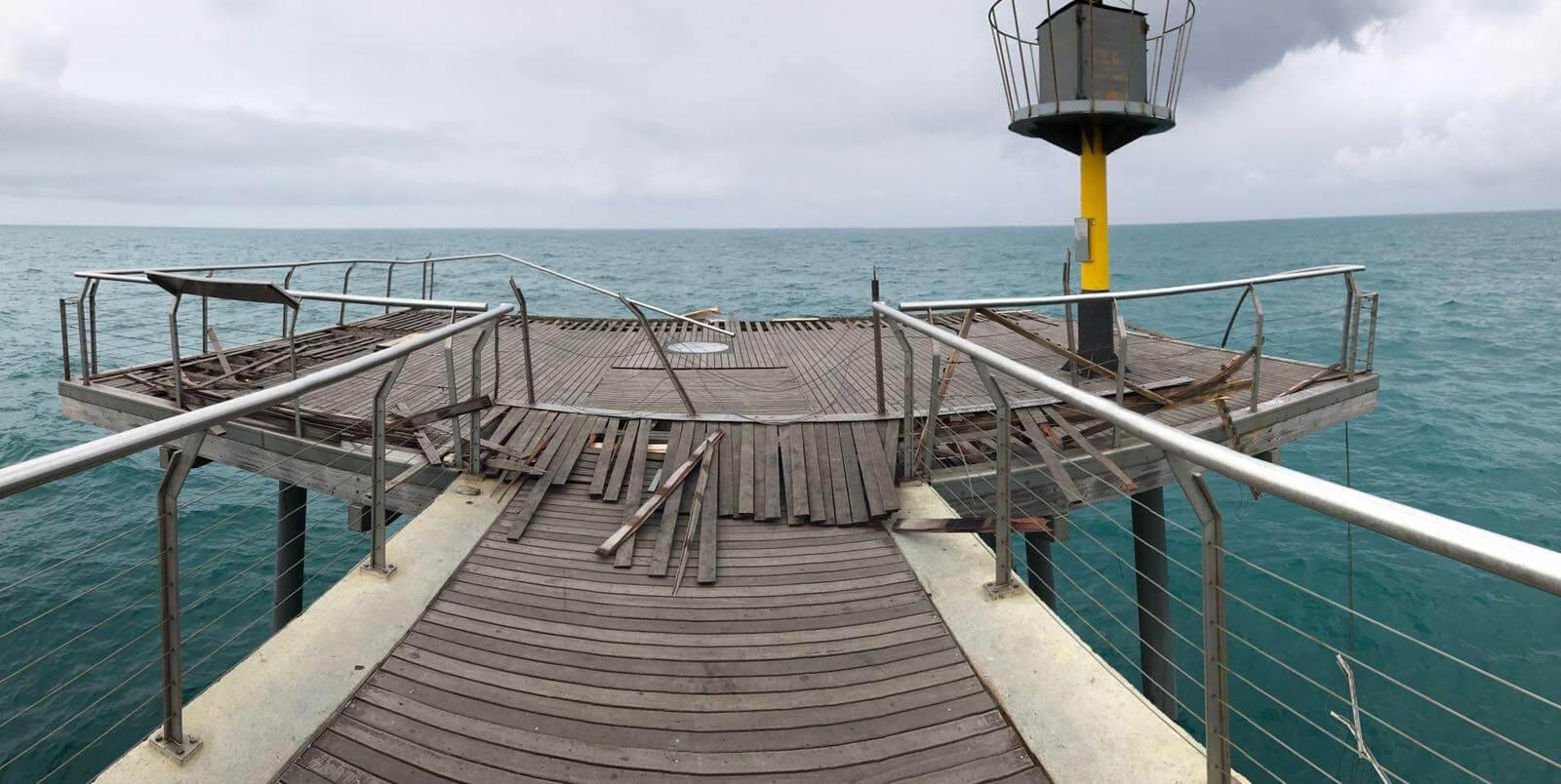 El Pont del Petroli de Badalona no té, aparentment, danys estructurals greus, però la sacsejada patida pel darrer temporal marítim, amb onades de fins a vuit metres, ha deixat destrosses per valor de 325.000 euros. L’Ajuntament en farà una rehabilitació pràcticament integral. A la plataforma final, bona part de les bigues de fusta són irrecuperables i la barana d’acer inoxidable també ha resultat molt malmesa. També s’han detectat “moviments centimètrics” en alguns trams del pantalà, però segons l’informe preliminar no semblen afectats els pilons, els carregadors de formigó, les bigues de formigó i la llosa, que presenten una “integritat estructural correcta”.