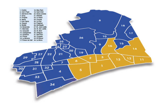 Aquest dimarts hem conegut els resultats per barris de les eleccions municipals. El PP s’ha imposat a Artigues, Bonavista, Bufalà, Can Claris, Mas Ram, Canyet, Pomar de Dalt, La Mora, Congrés, El Remei, Gorg, La Pau, La Salut, Lloreda, Nova Lloreda, Pomar, Puigfred, Montigalà, Sant Antoni de Llefià, Sant Joan de Llefià, Sant Mori de Llefià, Sant Crist, Sant Roc i Sistrells. La Badalona Valenta, la coalició de Guanyem i ERC, s’ha imposat a Canyadó, Manresà, Guixeres, Casagemes, Centre, Coll i Pujol, Dalt de la Vila, la Morera, Progrés i Raval. El PSC, per la seva part, ha estat segona força a barris com La Salut, Llefià, Sistrells, Montigalà o Lloreda. Per la seva part, Junts per Catalunya ha estat la segona força al Centre. En canvi, el PP ha estat segona força a Dalt la Vila, Casagemes, Progrés o Coll i Pujol.