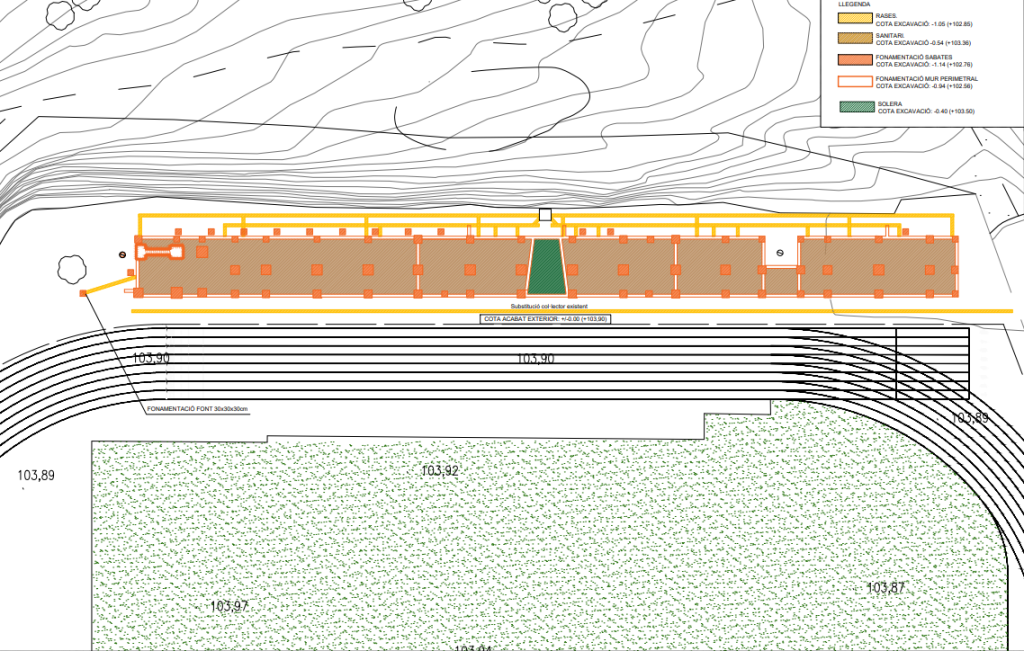 El projecte implica la construcció d’un nou edifici annex a les pistes d’atletisme i al camp de rugbi. Aquest edifici ha de garantir el correcte funcionament de la instal·lació (vestuaris, magatzems, gimnàs…). A més, a la seva coberta s’ha projectat una graderia amb marquesina per protegir als espectadors del sol i de la pluja.