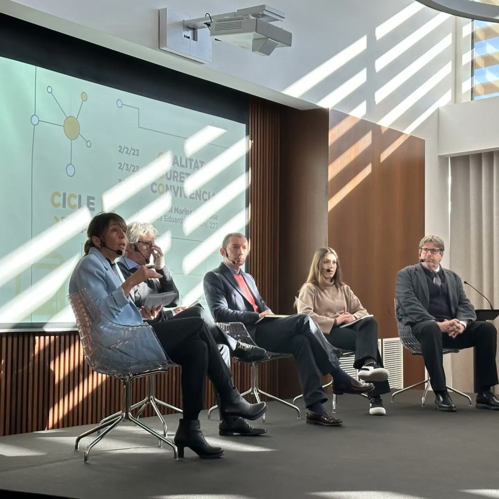 La taula de debat entorn del “Transport Públic i Oci Nocturn” va comptar amb la participació del sotscap de la Divisió Territorial de la Guàrdia Urbana de Barcelona, Pedro Jiménez, Julia Rosanna Sánchez, presidenta del Consell Nacional de la Joventut de Catalunya, Benjamí Cubillo, subdirector general de Transport Públic per Carretera i Mobilitat del Departament de Territori i Francisco José González, subdirector de l’Àrea de Trànsit i Operacions de TUSGSAL.