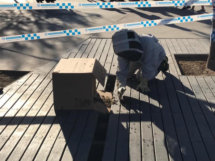 Els Bombers de la Generalitat van realitzar, aquest diumenge, un parell d’actuacions al Passeig Marítim de Badalona on van haver de retirar un parell de ruscos d’abelles que s’havien format en un parell de punts de la platja de l’Estació. La Guàrdia Urbana va alertar als serveis d’emergència d’aquests eixams d’abelles amb l’objectiu que fossin retirats ràpidament, ja que suposava un perill per la gran quantitat de banyistes que s’havien acostat fins al litoral badaloní. El primer rucs, que va caure d’un arbre, estava situat davant de l’aparcament de l’Estació i l’altra gairebé a l’alçada de l’Anís del Mono. Els dos ruscos van ser retirats per la Unitat especialitzada en aquest tipus d’intervencions de Viladecavalls. Foto: Bombers
