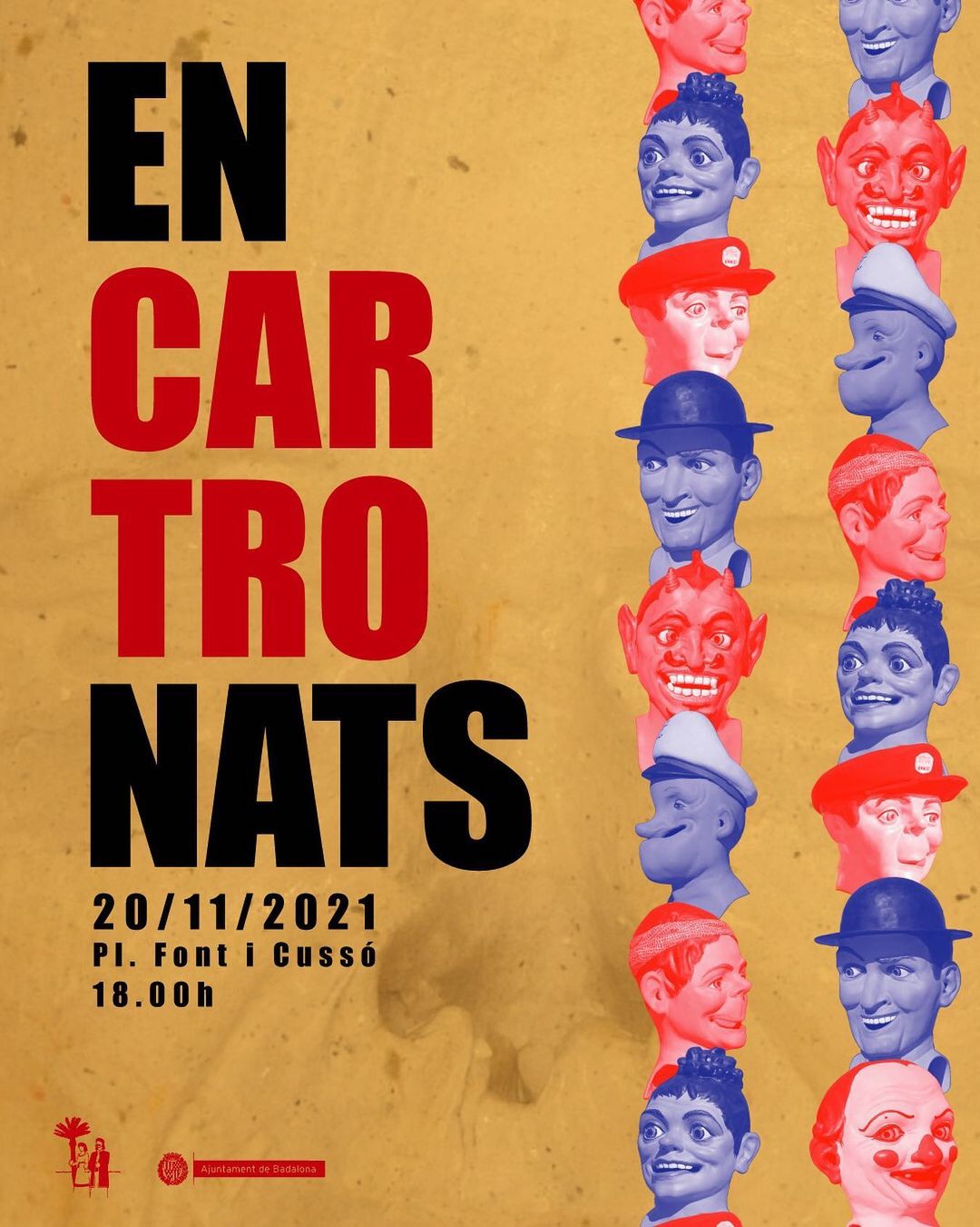 Aquest dissabte 20 de novembre, a les 18h, la Plaça Font i Cussó, al barri de Dalt la Vila, acollirà l’espectacle ENCARTRONATS, un acte organitzat per la Colla de Geganters de Badalona, amb el suport de l’Ajuntament de Badalona, on, per primer cop, els capgrossos de la ciutat seran els protagonistes d’un acte creat al voltant d’aquestes figures. Amb aquesta fita la Colla de Geganters de Badalona clourà l’any del seu 35è aniversari.