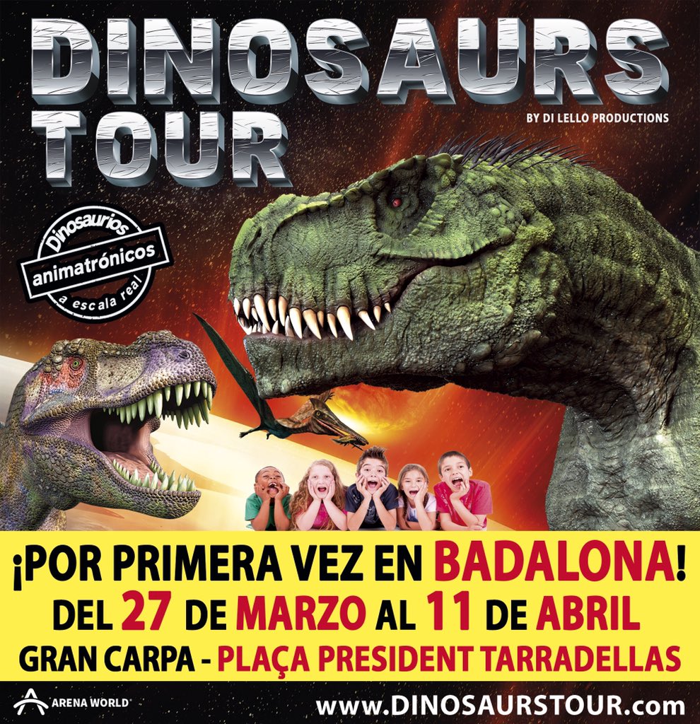Si us agraden els dinosaures, us interessa la proposta d’aquesta Setmana Santa a Badalona: arriba Dinosaurs Tour, l’exposició més gran de dinousaures animatrònics. Dinosaurs Tour és un apassionant viatge per l’època dels dinosaures, amb una trentena de peces a mida real que simulen l’aspecte i el comportament d’aquests animals prehistòrics. Segons expliquen els responsables de Dinosaurs Tour, «és un autèntic Parc Juràssic. Exposem dinosaures que, gràcies a la tecnologia, es mouen i fins i tot respiren!».