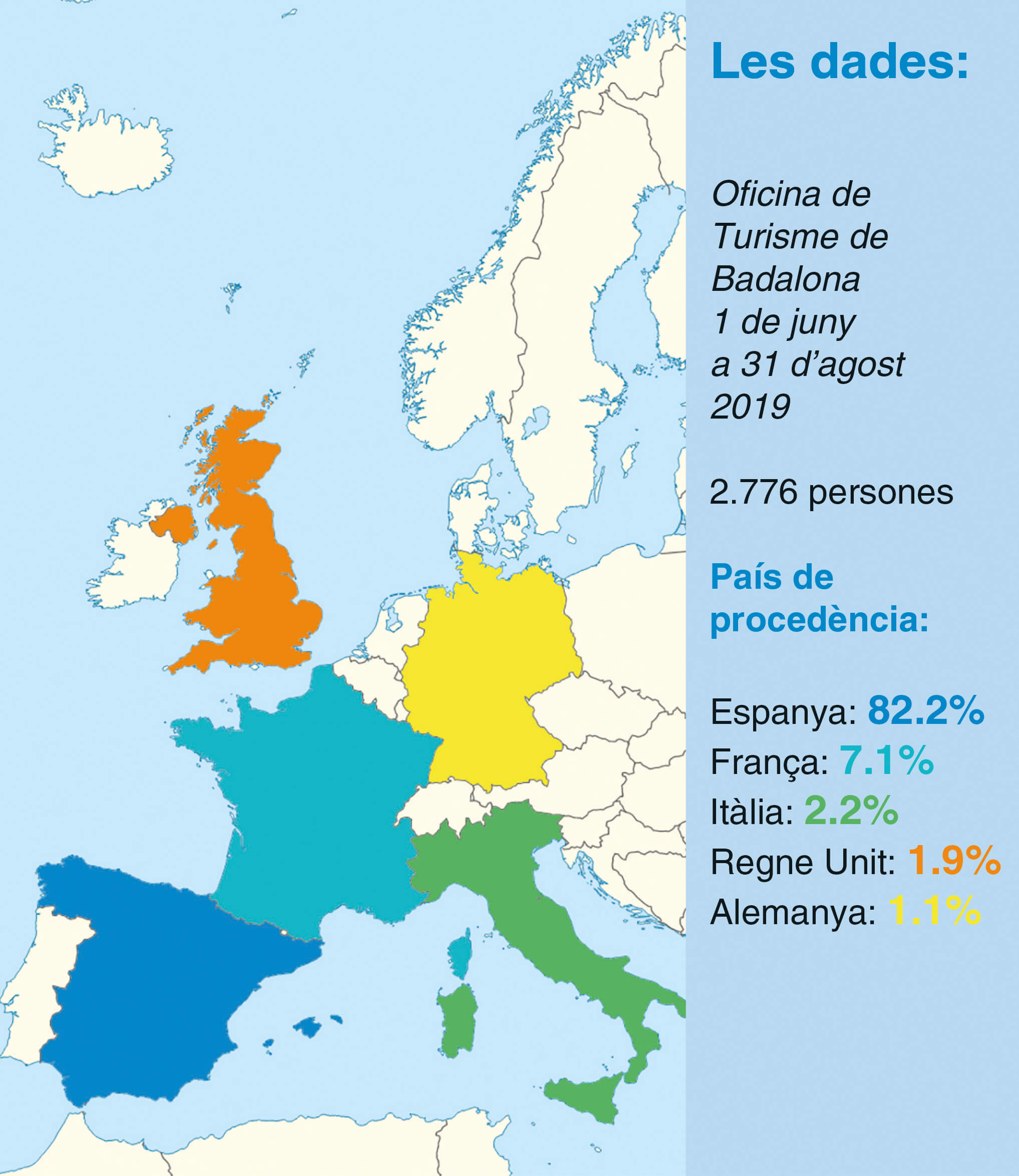El pròxim dilluns, 23 de setembre, començarà oficialment la tardor. Arriba l’hora de començar a fer balanç de com ha anat l’estiu a Badalona. L’Oficina de Turisme ha fet una primera valoració d’aquestes mesos de temporada alta turística. Des de l’1 de juny i fins al 31 d’agost, 2776 persones s’han adreçat a l’Oficina de Turisme de Badalona, ubicada a l’edifici del Carme. Segons dades que ha pogut saber el TOT, la majoria, un 82,2%, provenien de l’Estat Espanyol, seguida dels ciutadans francesos, un 7,1%, sent la nacionalitat estrangera que més ha visitat aquest estiu la ciutat de Badalona. També destaquen els ciutadans italians, un 2,2%, del Regne Unit, un 1,9% i alemanys, un 1,1% que s’han adreçat a l’Oficina de Turisme de Badalona. Pel que fa a les pernoctacions, segons les mateixes fonts, un 33% dels ciutadans francesos que han utilitzat l’Oficina de Turisme s’han quedat a dormir a Badalona. Segueixen els ciutadans de l’Estat, un 22,3% i d’aquests destaca que el 19,3% van venir del País Basc. Els italians que van pernoctar a Badalona van ser un 8,6%. D’altra banda, un 87,3% que van utilitzar els serveis de l’Oficina de Turisme van venir per oci i només un 3,4% per esdeveniments. La majoria de turistes, un 19,1%, van demanar plànols i un 7,1% es van interessar pel Museu o les Termes. Pel que fa a productes turístics, un 45,1% van interessar-se per productes culturals, un 16% per compres i un 14,7% per turisme de natura. El 90% que van utilitzar l’Oficina de Turisme ho van fer de manera presencial.
