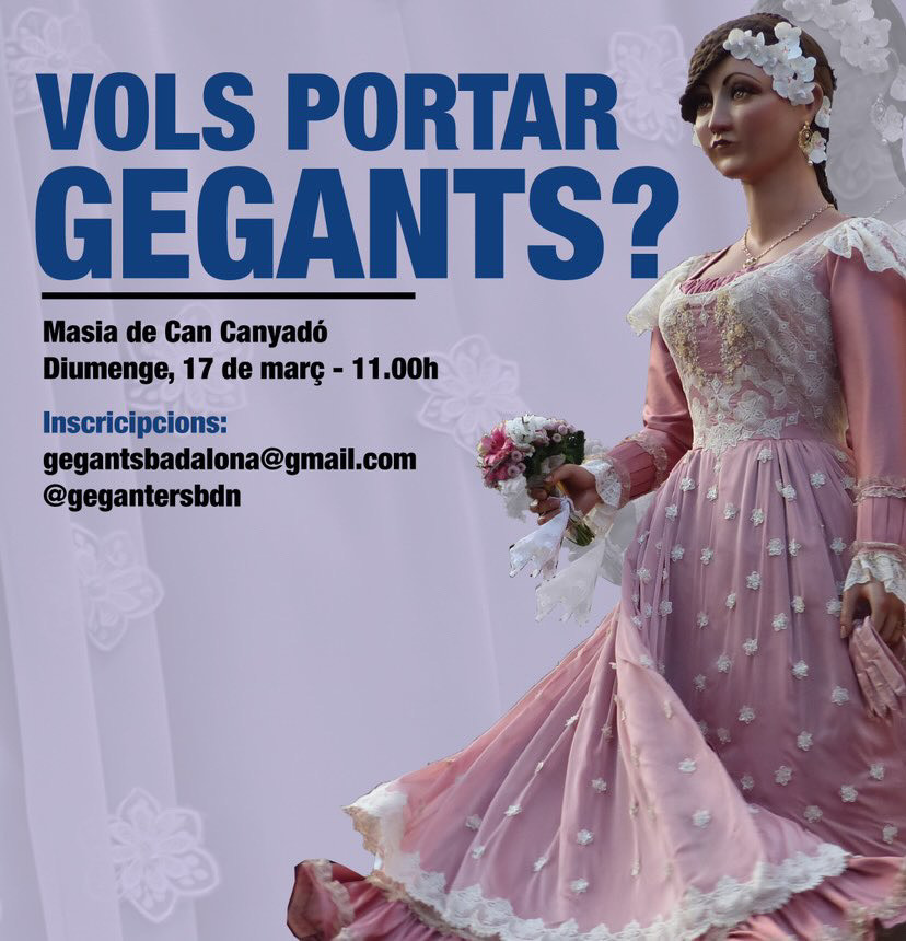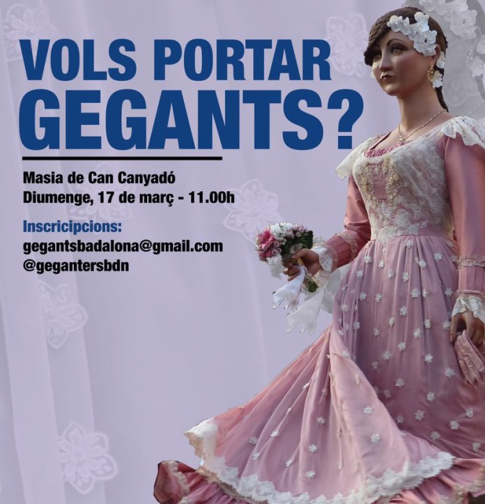 La primavera comença a tocar la porta, i amb ella, Badalona s’omplirà d’activitats, des de Sant Jordi, la festa Medieval, la Magna Celebratio o les Festes de Maig. Per anar obrint boca, els geganters de Badalona proposen que tothom que ho vulgui podrà portar-los. La proposta serà el pròxim 17 de març, a les 11h, a la Masia de Can Canyadó. Les persones interessades es poden inscriure al correu [email protected] o bé a les xarxes socials @gegantersbdn.