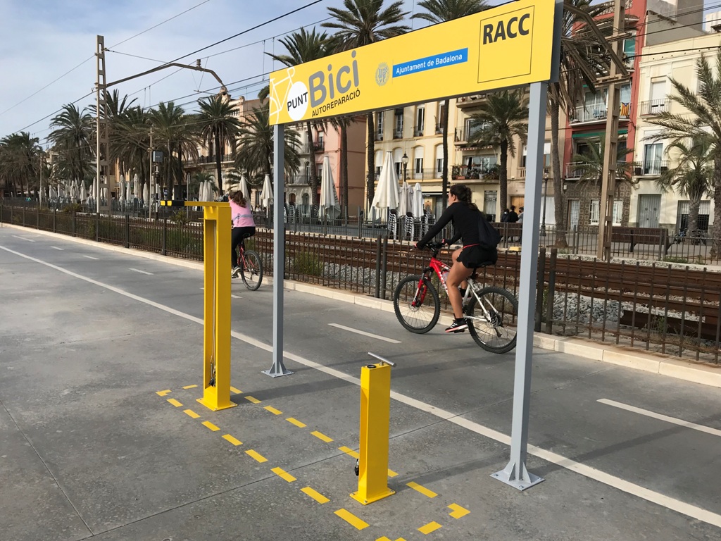 El Punt Bici del passeig Marítim de Badalona, el primer que s’instal·la al Barcelonès Nord, forma part de les accions previstes en el conveni signat entre l’Ajuntament i el RACC amb l’objectiu de potenciar una mobilitat més segura, cívica i respectuosa.