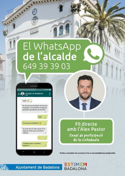 ERC Avancem-MES han denunciat que el govern del PSC continua utilitzant els mitjans i recursos públics per fer campanya potenciant la figura d’Àlex Pastor, segons han explicat en un comunicat. Segons ERC, l’equip de govern no explica quines garanties ofereix el canal de WhatsApp de l’alcalde, presentat aquest dimecres, per tal d’assegurar la privacitat dels ciutadans i ciutadanes de Badalona que el facin servir, així com la correcta protecció de les seves dades personals. A més, ERC critica que l‘ús de la paraula en aquest suposat canal participatiu és només unidireccional, i lamenten la personalització de la tasca tècnica de l’ajuntament.