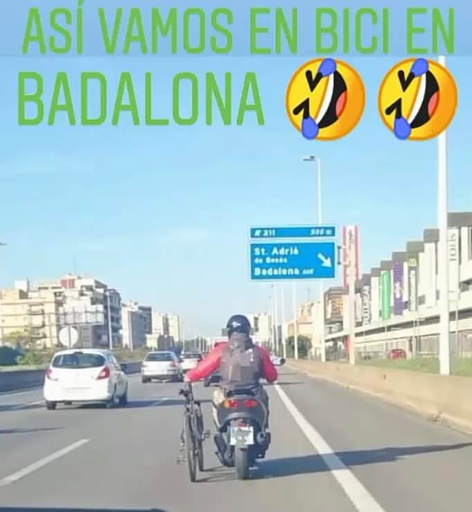 Durant les darreres hores està circulant una imatge a través de les xarxes socials que s’ha fet viral. A la fotografia hi apareix un motorista portant en un braç una bicicleta per l’autopista C-31, al seu pas pel Centre Comercial Màgic de Badalona. La imatge d’aquesta imprudència de trànsit s’ha escampat com la pólvora, tot i aquest mitjà no ha pogut confirmar la data que va ser captada la instantània.
