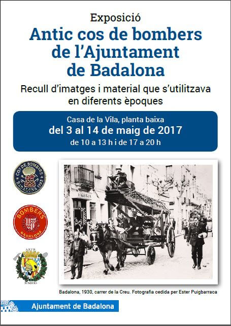 La planta baixa de la Casa de la Vila acull des de demà fins al 14 de maig de 2017 una exposició retrospectiva sobre l’antic cos de bombers de l’Ajuntament de Badalona. A l’exposició es pot veure un recull de documents i imatges de l’època; material per a l’extinció d’incendis i salvament com mànegues i llances, escuts i material divers del servei que s’han utilitzat en diferents èpoques.