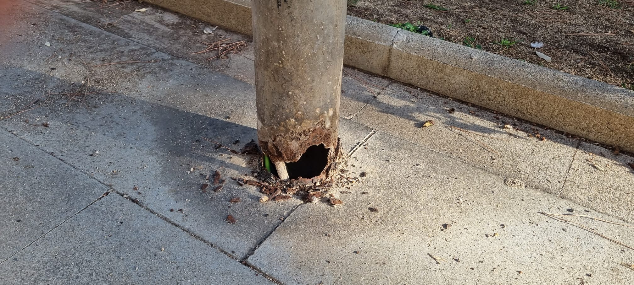 En Jaume Cornellà, lector del TOT, ens envia aquesta imatge de l’estat actual dels fanals a la plaça del Gas, al barri del Progrés. El lector ha explicat que ha trucat a la Guàrdia Urbana per avisar del seu estat, però de moment tot continua igual. El veí creu que és molt fàcil que puguin caure i maleïdament pugui fer algun dany personal.