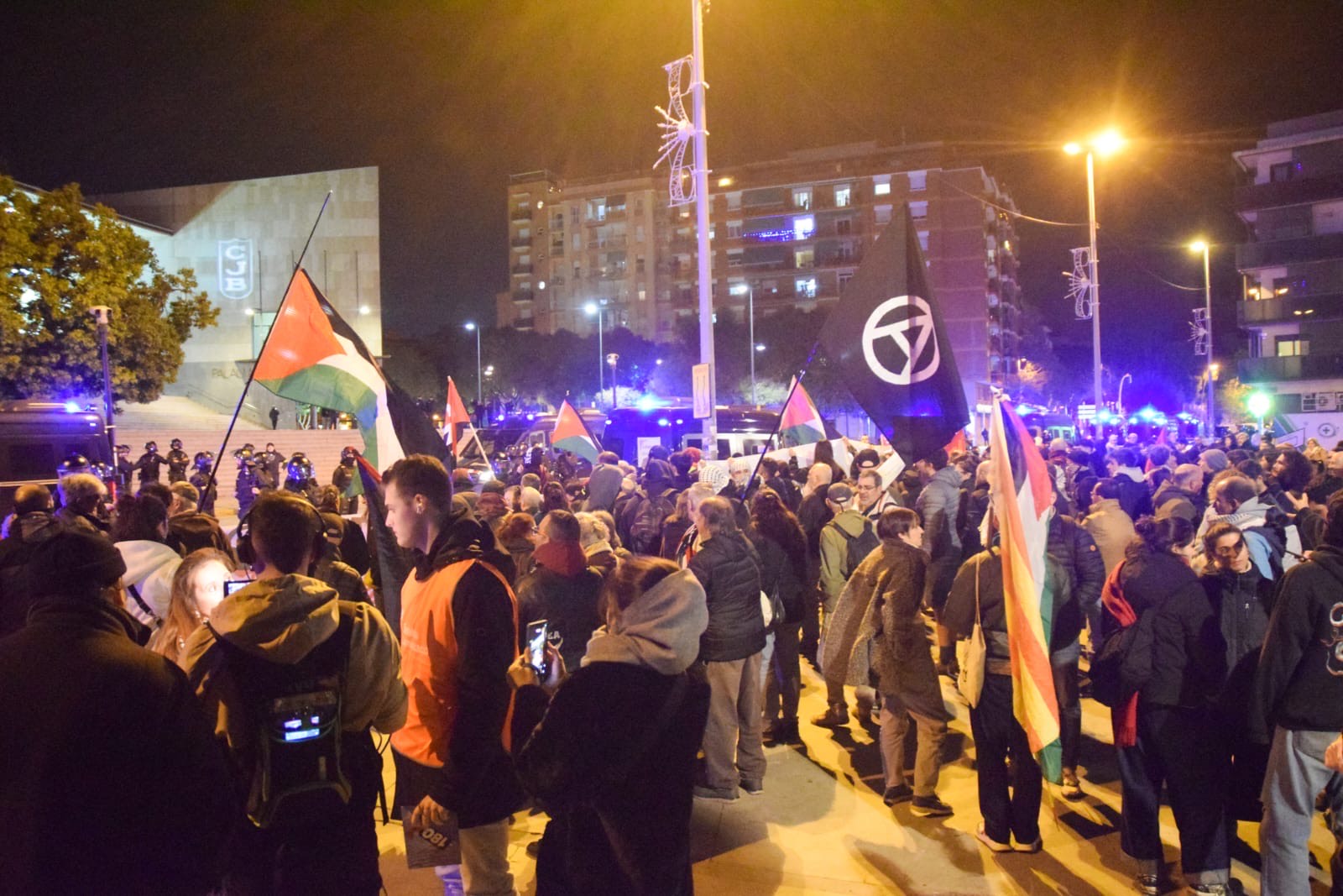 Les protestes propalestines convocades a Badalona per la presència del Hapoel Holon israelià, que aquest dimecres juga contra el Joventut un partit de la fase regular de la Champions de bàsquet, han congregat poc més de 150 persones davant l’Olímpic de Badalona. La imatge contrasta amb l’ampli desplegament policial dels Mossos d’Esquadra, que han blindat el pavelló amb un dispositiu de màxims, amb més de 30 furgonetes policials i helicopter. Els manifestants s’han concentrat a la plaça President Tarradellas i han cridat consignes contra el genocidi. La protesta s’ha desenvolupat sense incidents. D’altra banda, l’equip israelià ha arribat escortat a Badalona a dos quarts de set de la tarda, dues hores abans del matx. L’enfrontament és juga a porta tancada.