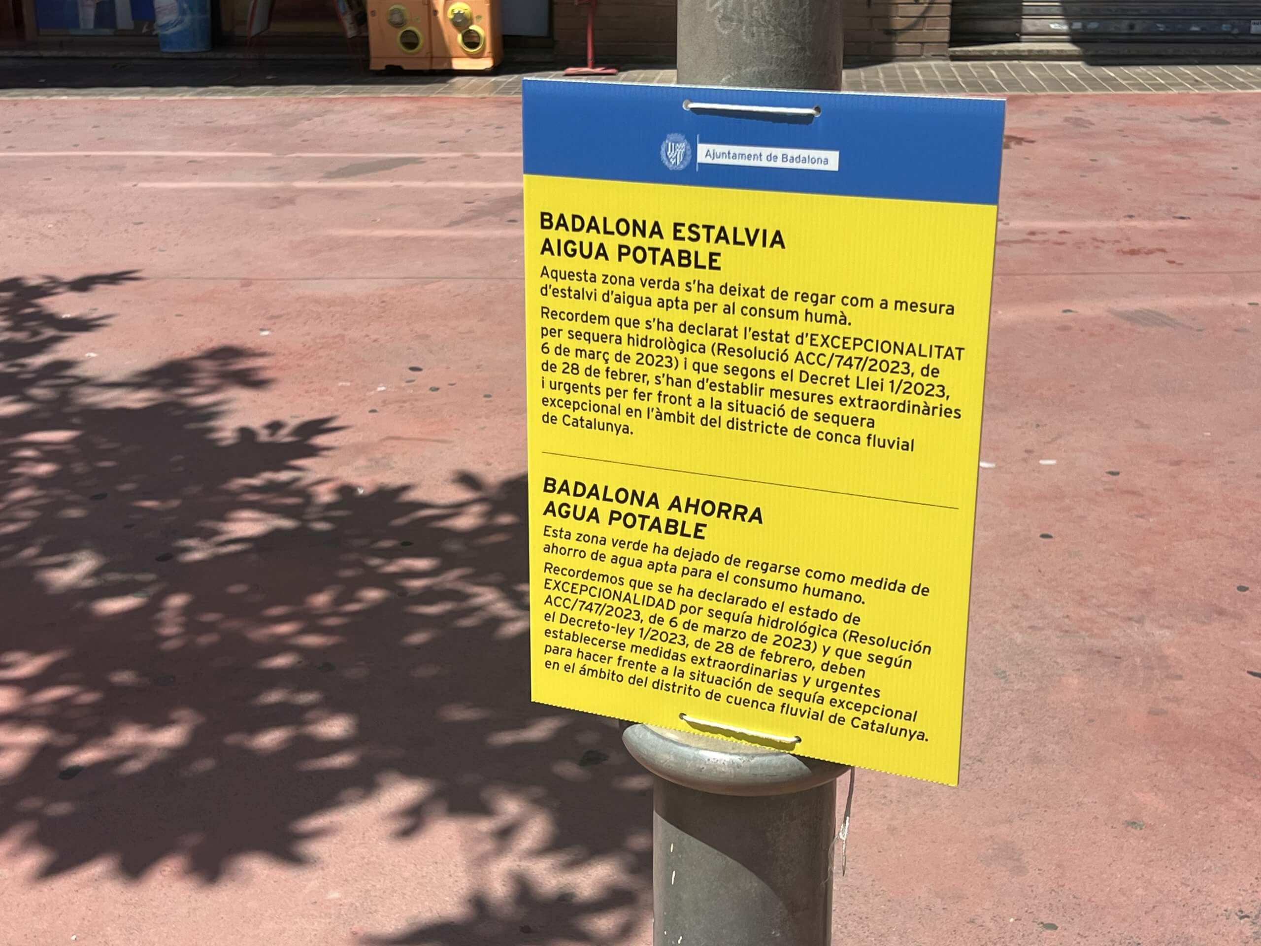 Segur que heu vist l’estat de bona verda part de les zones verdes de Badalona, estan ben seques. El decret de sequera de la Generalitat de Catalunya, que va entrar en vigor fa mesos, obliga a aplicar aquesta mesura. Només una petita part de les zones verdes de Badalona es poden regar actualment perquè s’utilitza aigua freàtica. Aquesta aigua s’extreu de diversos dipòsits que té la ciutat. Un camió cisterna carrega aigua d’aquest pou, que posteriorment és distribuïda entre els equips autònoms de neteja de carrers o reg, amb els que compta l’empresa concessionària del servei. Aquest recurs es fa servir només per a la neteja viària i també per regar una petita part de les zones verdes de la ciutat. Ara bé, a la ciutat, mentre tenim zones verdes sense regar fa 18 anys que una fuita d’aigua perd cada segon 2 litres d’aigua a la Riera de Canyet. Aquí només una petita part de l’aigua s’aprofita, en un dipòsit municipal, però bona part de l’aigua va riera avall.
