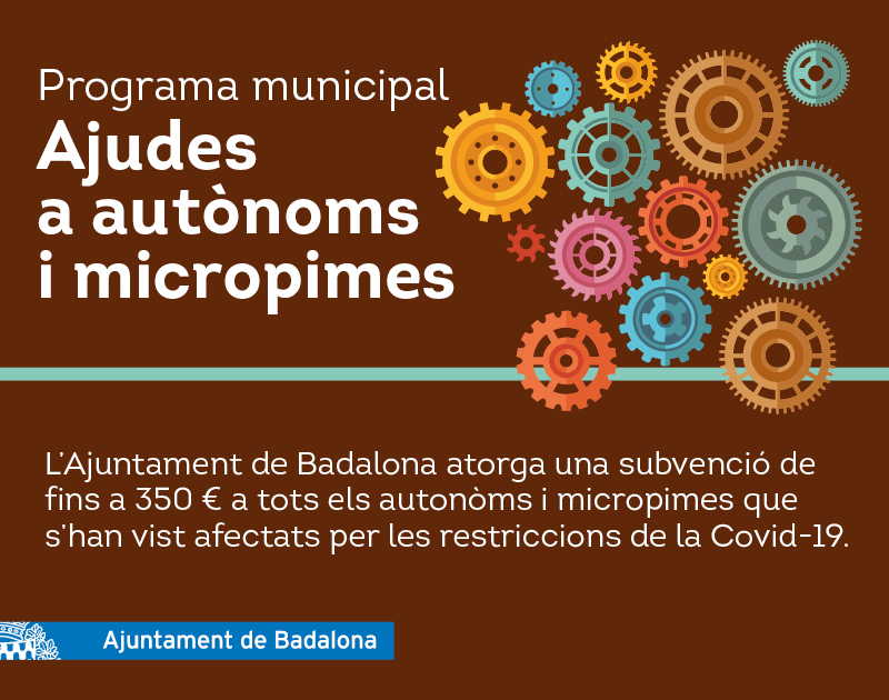 Ja s’ha obert el termini per sol·licitar els ajuts econòmics per a autònoms i micropimes afectades pel COVID-19 que es podran demanar fins al 31 de desembre de 2020. En aquesta primera convocatòria d’ajudes l’Ajuntament de Badalona atorgarà als treballadors i treballadores autònomes i a les micropimes afectades per l’impacte de les mesures que s’han establert fruit de la crisi sanitària generada per la COVID-19 una ajuda de fins a 350 €.