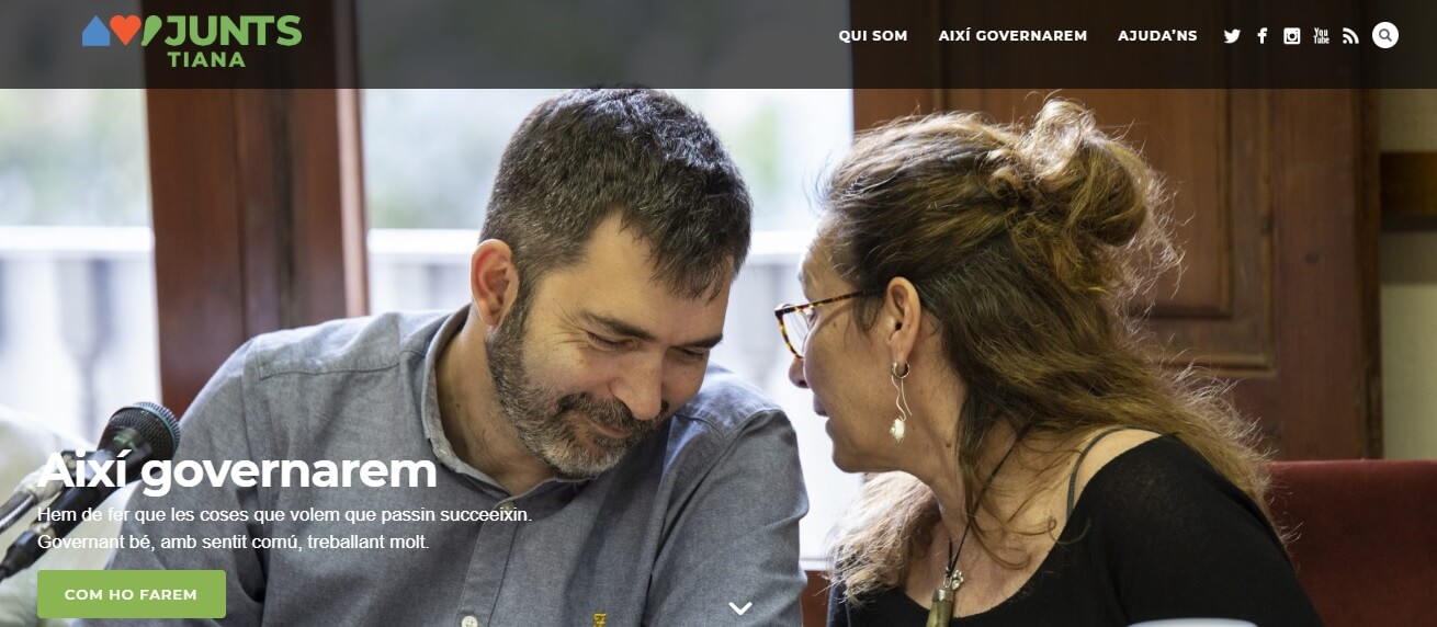 El web s’organitza a partir de 3 menús que trobareu a la capçalera: “Qui som”, “Així governarem” i “Ajuda’ns”. També hi ha tres grans espais a la portada amb fotografies on podeu accedir als continguts: “Així governarem”, “L’equip” i “Junts en imatges”. La nova pàgina web de Junts Tiana ha costat 80 euros, que fan referència a la plantilla de disseny i continguts i el pagament anual del domini. La programació i els continguts ha anat a càrrec de l’equip de comunicació de Junts a cost zero. S’han invertit unes 100 hores en la feina de redacció, disseny i muntatge de la nova web.