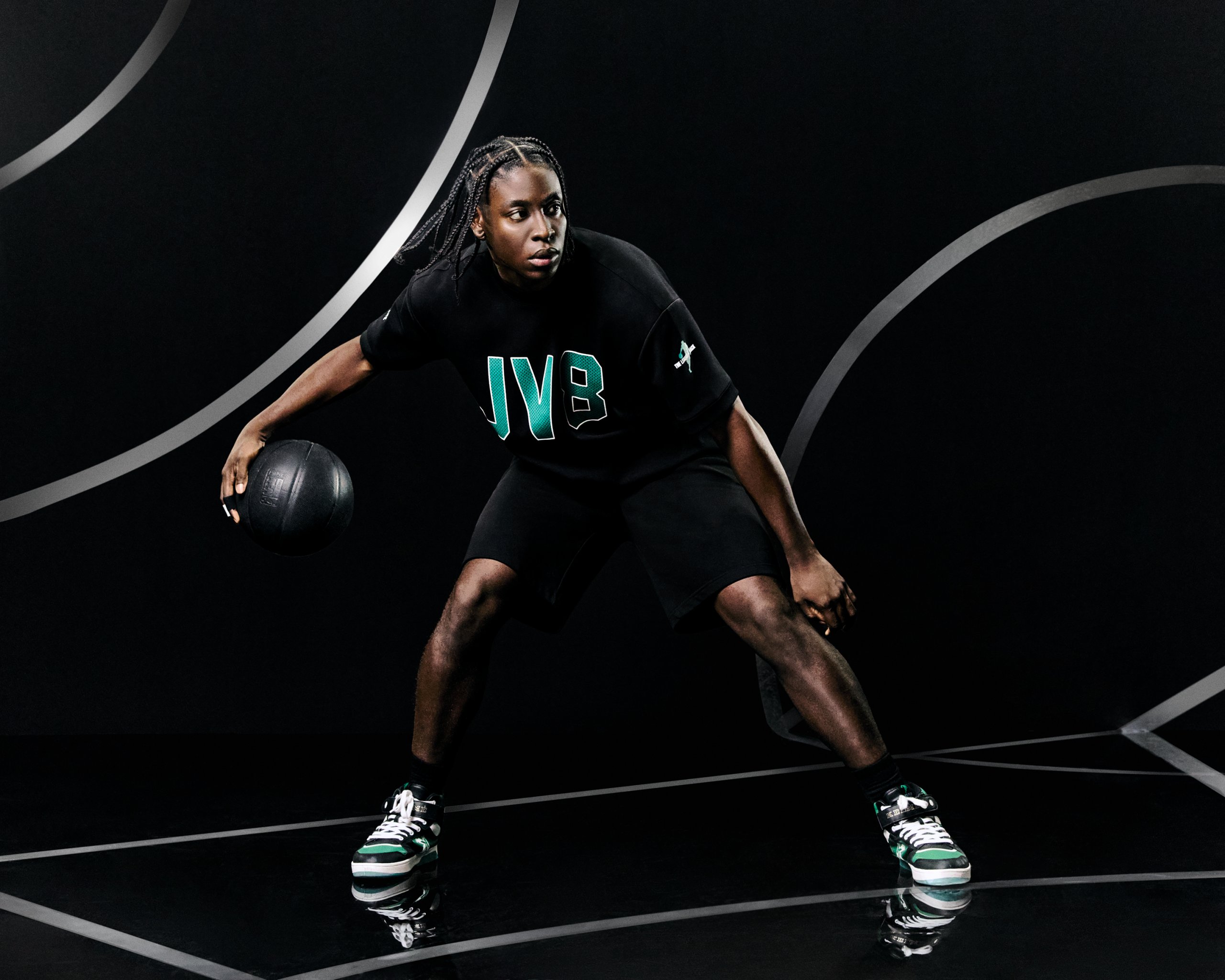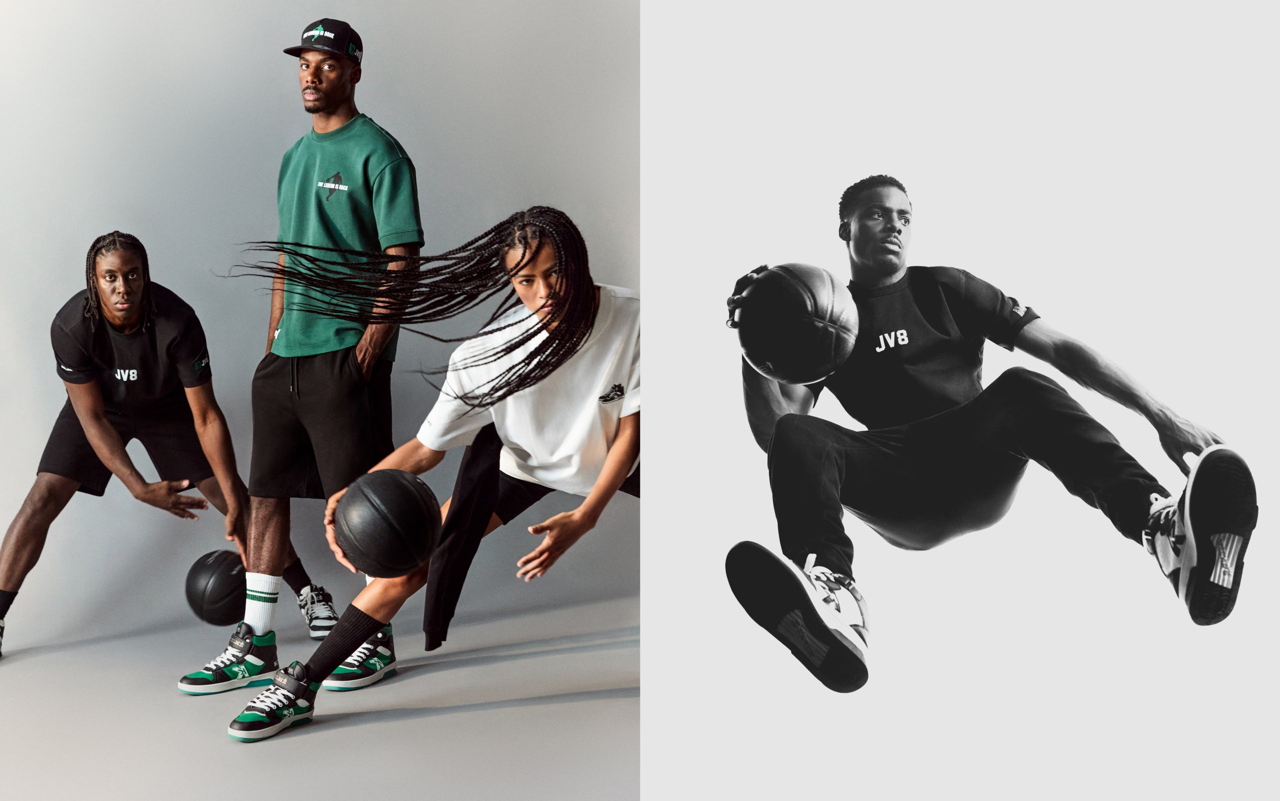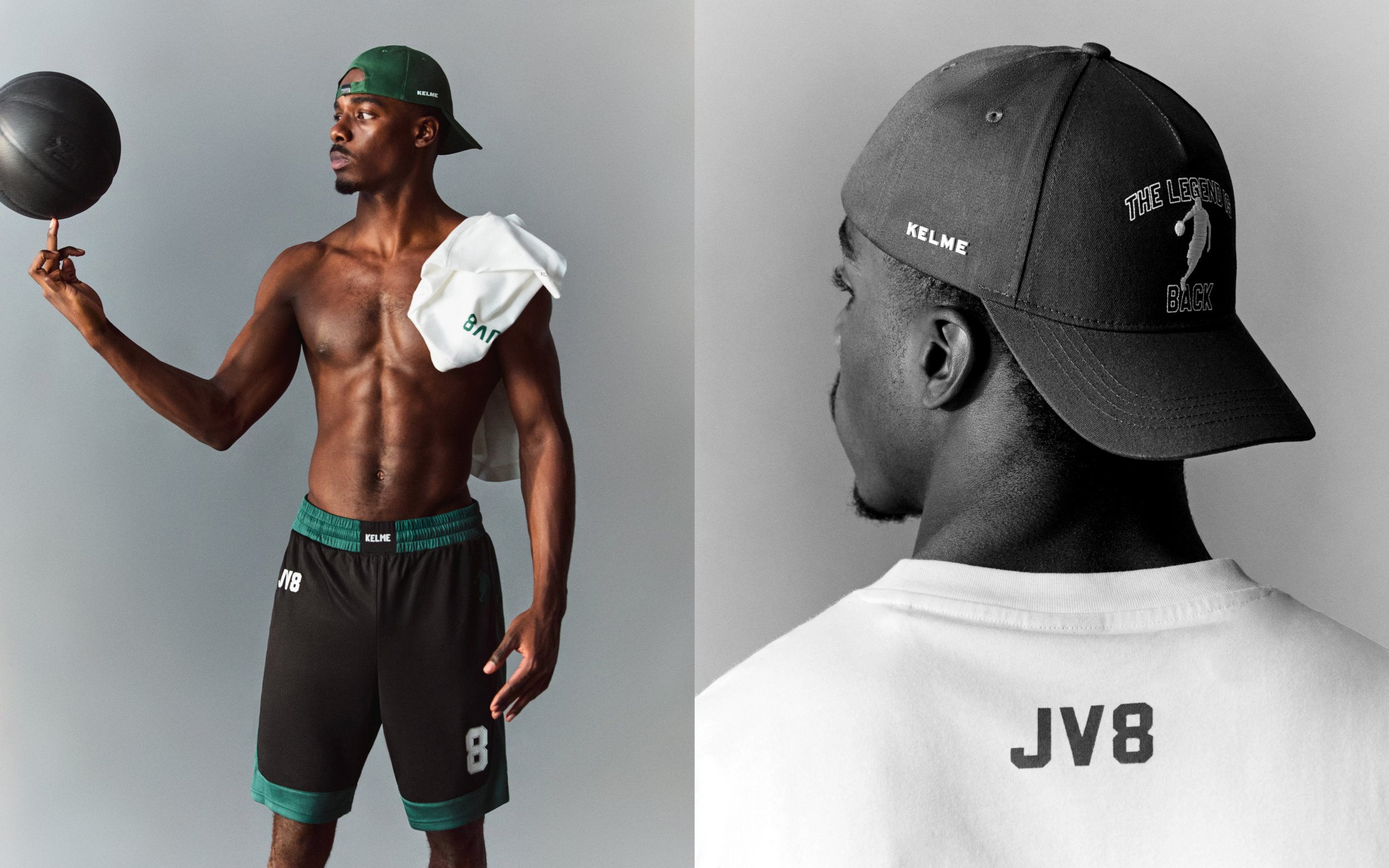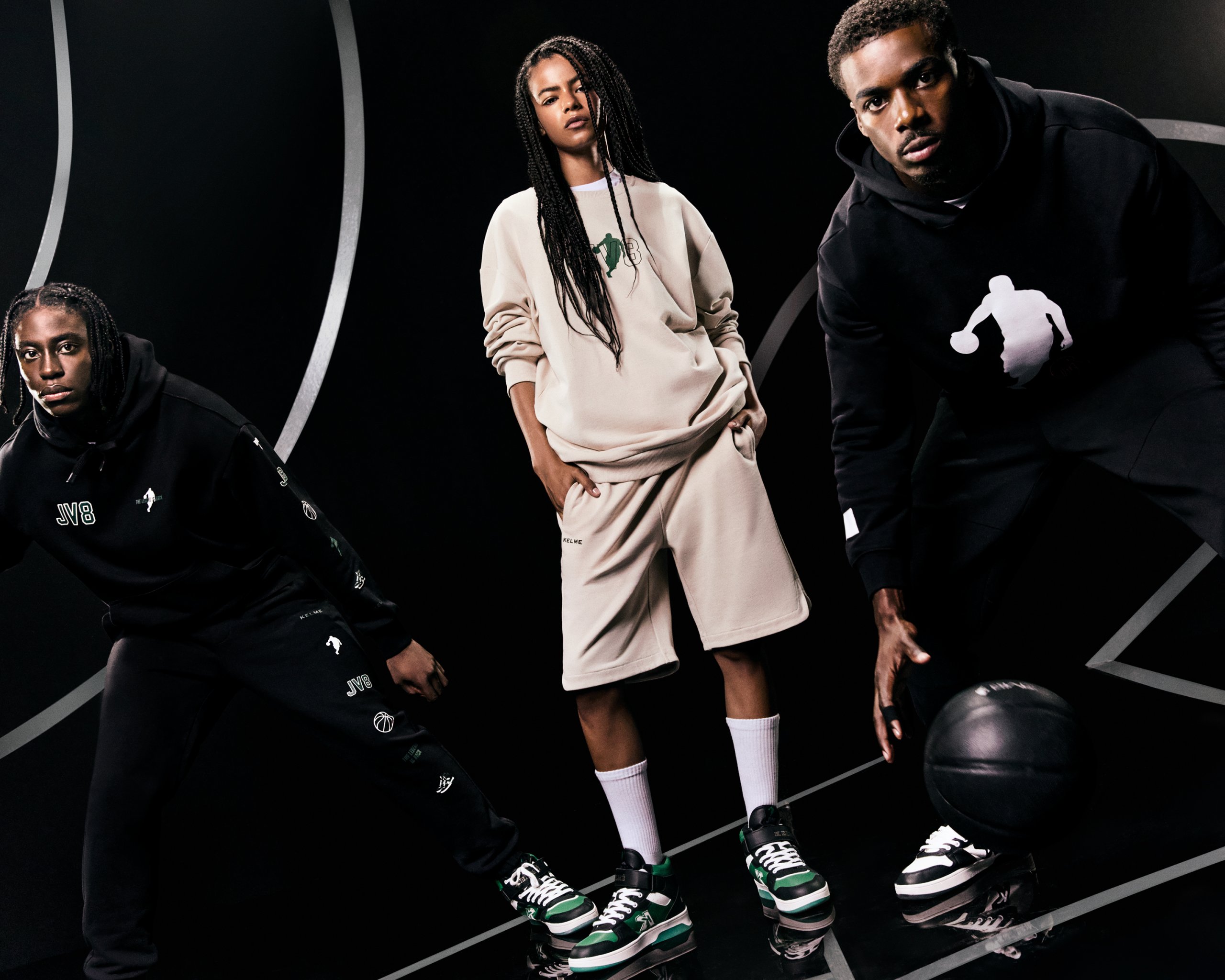 La colección KELME JV8 X LEFTIES presenta siluetas relajadas y amplias, perfectas para un estilo streetwear contemporáneo con sudaderas, camisetas de manga corta y tirantes, diferentes opciones de chándal, bermudas, calcetines, bolsas deportivas, gorras y zapatillas. Cada prenda combina la funcionalidad y la estética reflejando la versatilidad del vestuario urbano. Los estampados se inspiran en elementos visuales del baloncesto más puro, como balones y accesorios, integrando la energía del deporte en cada diseño. El logo de la colección, trabajado con diversas técnicas de impresión, añade un toque distintivo y contemporáneo. La colección se caracteriza por tonos neutros, acentuados con detalles en colore verde y negro, siguiendo la estética JV8. Esta selección de colores resuena con las tendencias actuales ofreciendo opciones modernas y versátiles para el día a día.