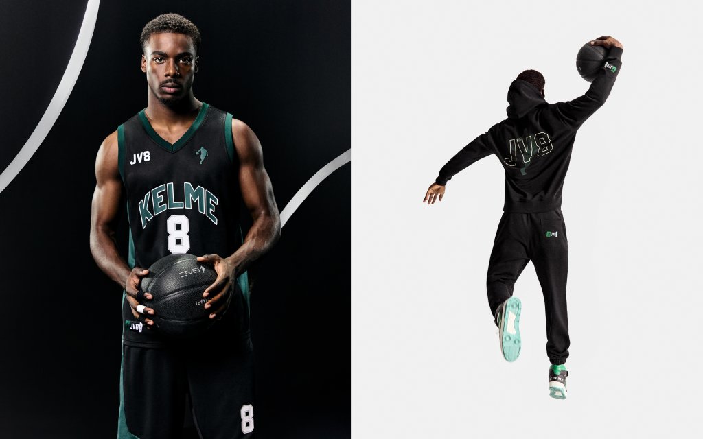 La colección KELME JV8 X LEFTIES destaca por su enfoque en el streetwear contemporáneo, con prendas como sudaderas, camisetas y chándales que combinan funcionalidad y estilo. Los estampados y diseños están inspirados en elementos del baloncesto, como balones y accesorios, creando una conexión visual directa con el deporte.