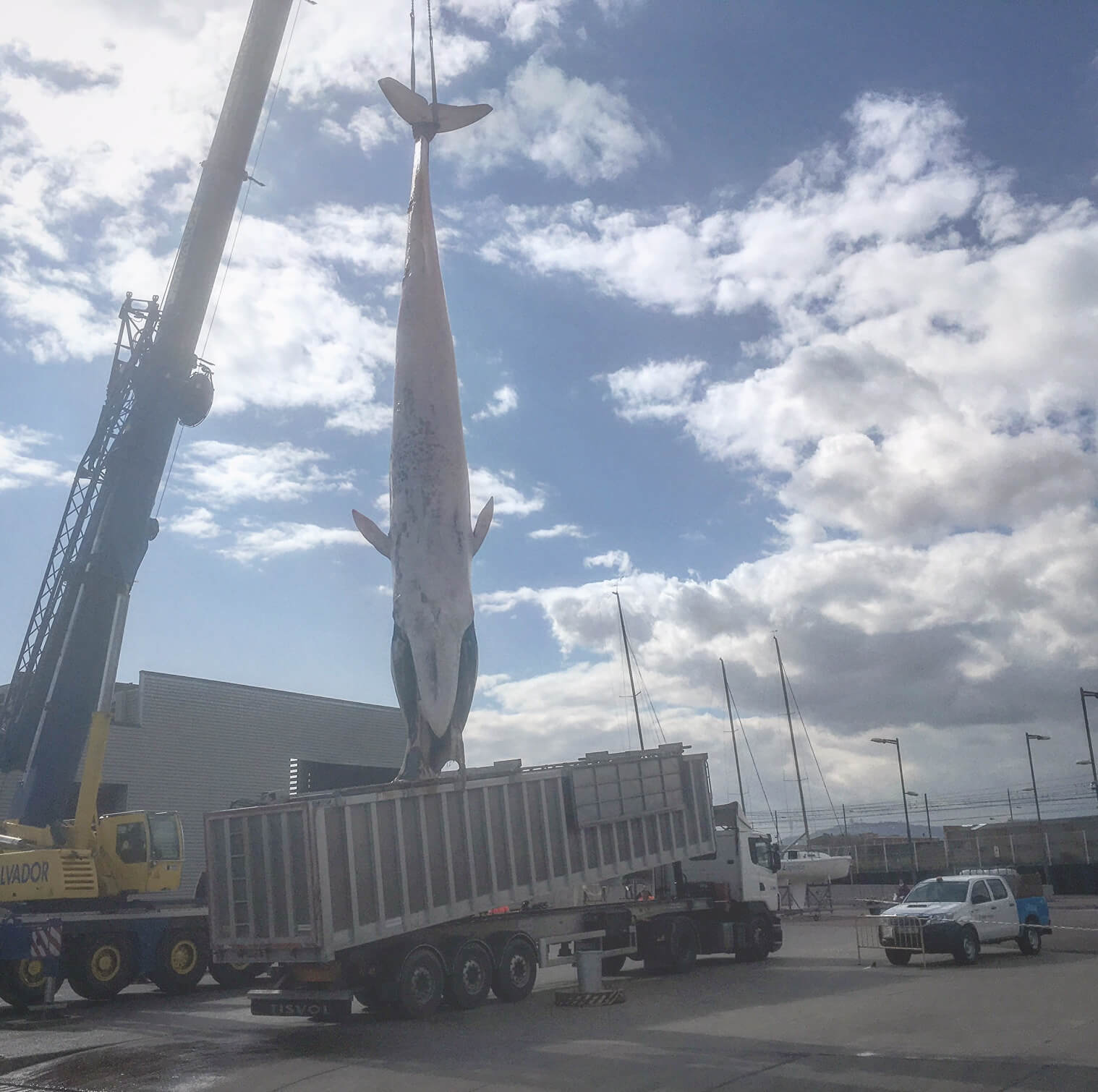 La balena va aparèixer el matí de dilluns en un tram del litoral de Montgat, que els darrers temporals van deixar sense platja. Aquesta situació va provocar que no hagi estat fins aquest dimarts al migdia quan se l’han endut, ja que la retirada ha acabat sent per mar. Des de Montgat una embarcació de Salvament Marítim l’ha arrossegat fins al port de Badalona , on finalment l’han pogut treure de l’aigua, després de tres hores de feina.