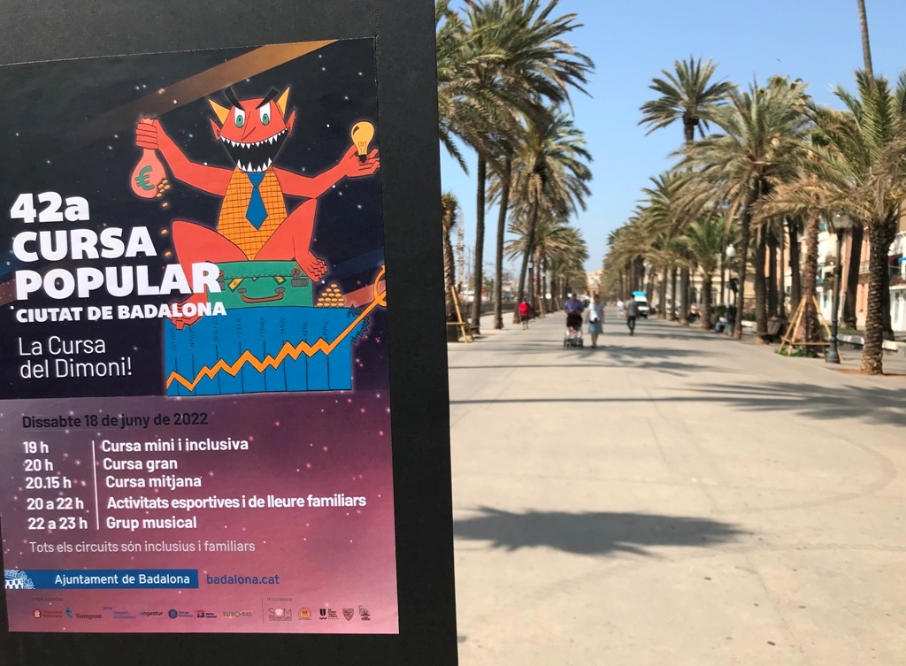 Dissabte 18 de juny a partir de les 19 hores se celebrarà la 42a Cursa Popular Ciutat de Badalona – La Cursa del Dimoni! Que accentua el seu caràcter familiar amb una cursa mini i inclusiva, una cursa mitjana i una gran de 10 quilòmetres de recorregut. A banda de la novetat de l’horari de tarda, en finalitzar les curses s’han programat diferents activitats esportives i de lleure familiar, a partir de les 20 hores, i un final de festa musical, amb un DJ, que tindrà lloc al passeig Marítim, a tocar de la platja dels Pescadors, a partir de les 22 hores.