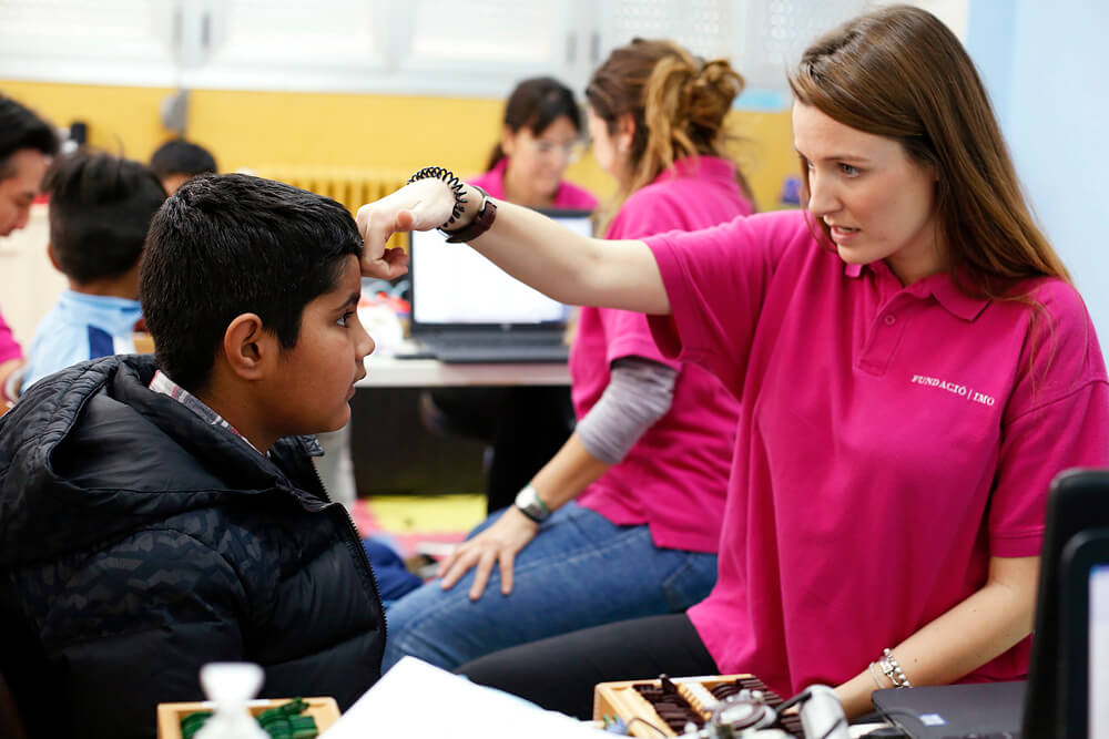 professionals de la salut que participen en el programa de la Fundació IMO. Com destaca la Dra. Ana Wert, oftalmòloga pediàtrica de l’IMO, “el professorat passa moltes hores amb els petits mentre realitzen tasques com llegir o veure la pissarra. A més, té la facilitat de poder comparar entre diversos nens que es troben en el mateix rang d’edat i, amb això, apreciar si tenen algun grau de dificultat.” Per això, l’especialista explica que, malgrat que “les revisions de la Fundació IMO se centren en P4 –edat clau per diagnosticar i per tractar precoçment defectes refractius o patologies com l’ambliopia (ull gandul) i l’estrabisme–, prop de la meitat dels escolars que finalment són atesos a les campanyes de revisió són alumnes de cursos superiors. La majoria no han acudit mai abans a l’oftalmòleg i són derivats pels docents davant la sospita d’un possible problema visual.