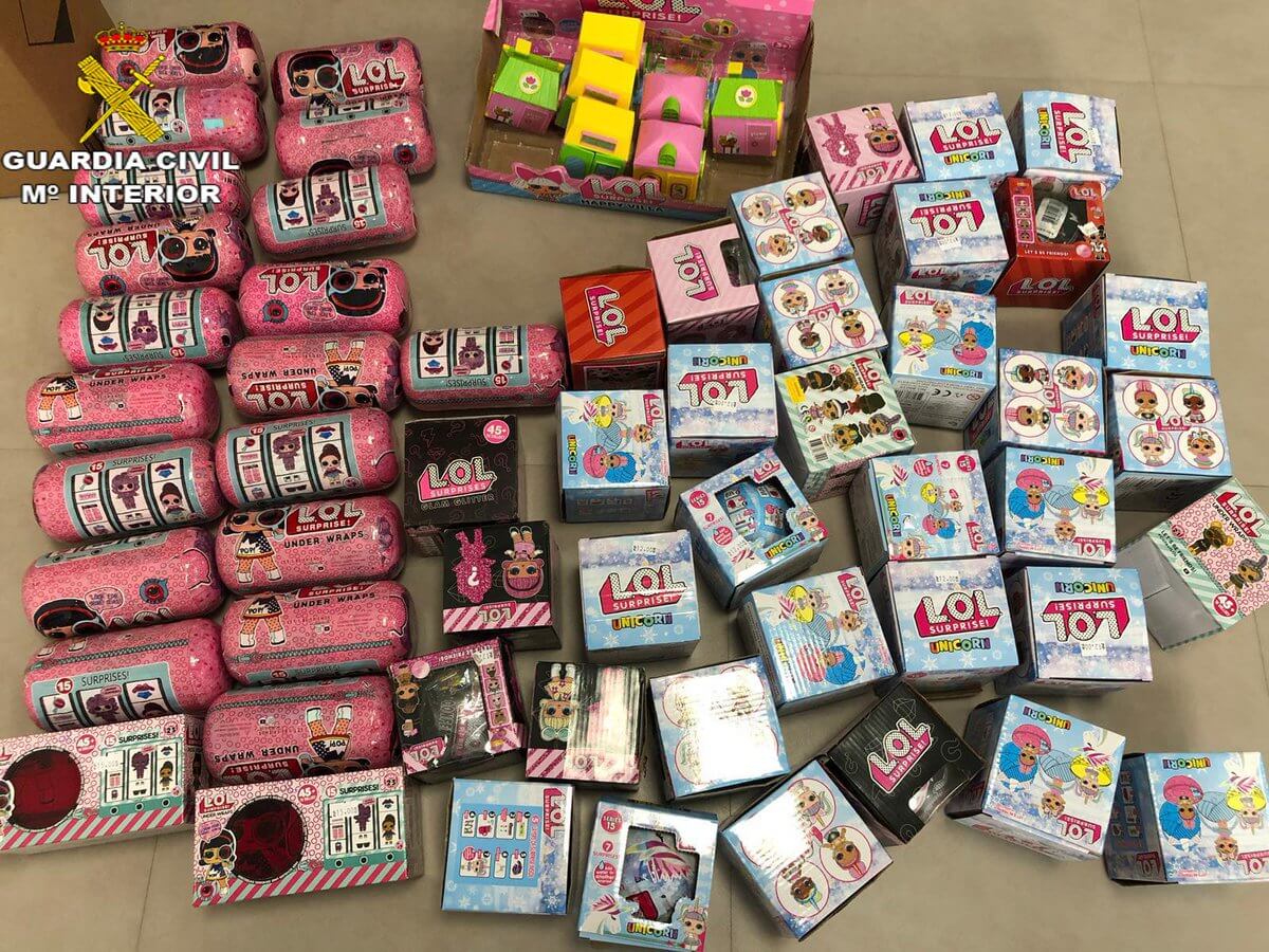Entre els productes requisats hi ha 718 boles LOL Surprise, a més de 333 paquets de cromos Fornite, 155 paquets de cromos i cartes de Pokemon, 128 Cry Babies, 143 ninos del Fornite, 10 joguines de la marca Cat Noir, 14 joguines Distaoella, 6 joguines de la marca Santoro London, 200 monos Findelings, 5 motxilles de l’Spiderman, 6 joguines de la Peppa Pig, 5 joguines més de la marca Pop i 26 clauers de la marca Fornite.