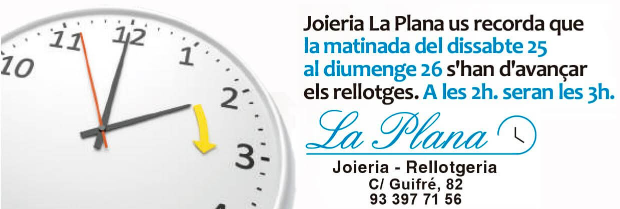 La matinada del proper diumenge, 26 de març, el rellotge s’avançarà una hora a les dues de la matinada, que passaran a ser les tres. Aquest canvi, que posa inici al període de set mesos d’horari d’estiu per al 2017, és una mesura establerta per la Unió Europea i que es fa de forma harmonitzada a una vuitantena de països de tot el món.