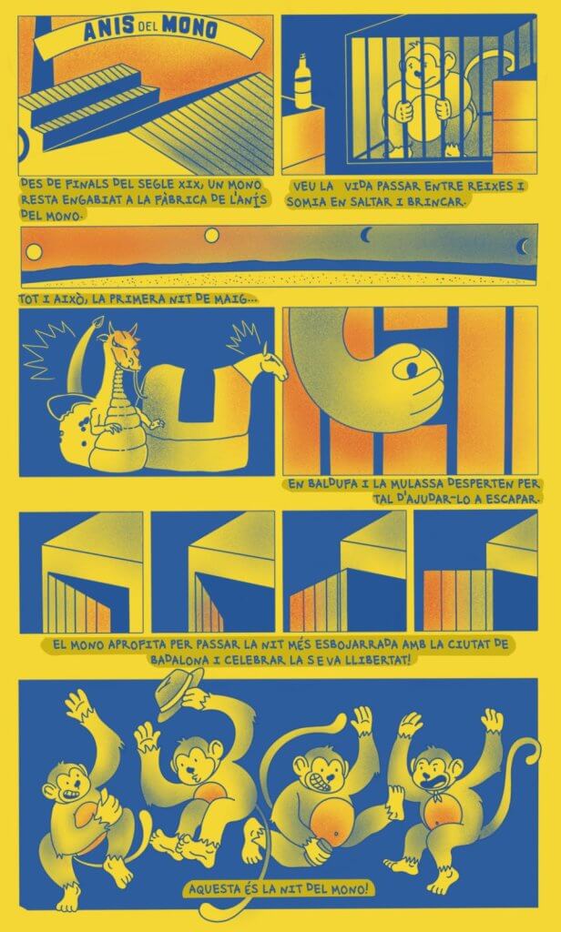 Els packs de La Nit del Mono valdran 6€ i inclouran: el got, el barret, 2 tickets per dues cerveses o un combinat i una il·lustració amb el còmic de La Nit del Mono i el recorregut fets per l’artista badalonina Abril Andreu. A més, també hi haurà un element sorpresa.