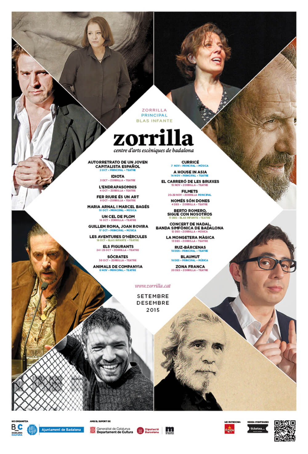 Alberto San Juan, Ramon Madaula, Josep Maria Pou, Mercè Arànega, Joan Pera, Carles Canut i el badaloní Lluís Marco seran alguns dels protagonistes destacats del darrer trimestre juntament amb Blaumut i el concert especial de Nadal de la Banda Simfònica de Badalona en l’apartat musical. Badalona Cultura, sota la marca Zorrilla – Centre d’Arts Escèniques de Badalona, ha programat per a aquest darrer trimestre de l’any als teatres municipals de la ciutat una àmplia i intensa oferta cultural de gran qualitat per a tots els públics. Reconeguts intèrprets de totes les disciplines artístiques ompliran el tres teatres de Badalona (Zorrilla, Principal i Blas Infante) fins a finals d’any. Obrirà temporada l’actuació de Alberto San Juan, al Teatre Principal, amb Autorretrato de un joven capitalista español, per parlar, en to de comèdia i autobiogràfic, dels temps actuals. Els espectacles familiars, organitzats conjuntament amb La Xarxa, arrancaran a l’octubre amb L’endrapasomnis amb La Tresca i la Verdesca i Teatre al Detall.Entre els 22 espectacles programats cal destacar, dins les produccions teatrals, Un cel de plom, amb Mercè Arànega on interpreta la vida de Neus Català, en l’any del seu centenari; Socràtes, producció del Festival de Mérida sota la direcció de Mario Gas i amb un gran repartiment encapçalat per Josep Maria Pou en el paper del savi grec; A house in Asia el nou espectacle de la companyia catalana Agrupación Señor Serrano premiada aquests 2015 amb el Lleó de Plata a la Biennal de Venècia; i una de les noves produccions del Teatre Nacional per al proper curs, Només són dones, espectacle multidisciplinari sobre el paper de la dona durant el període de la Guerra Civil que barreja teatre de text, dansa i música i que està interpretat per Míriam Iscla, Sol Picó i Maika Makovski. D’altra banda, el proper trimestre també ens tornarà amb el projecte de l’Obra d’entitats, després d’uns anys d’absència, on actors amateurs de la ciutat dirigits per Míriam Puntí presentaran Els Figurants de José Sanchis Sinisterra.
