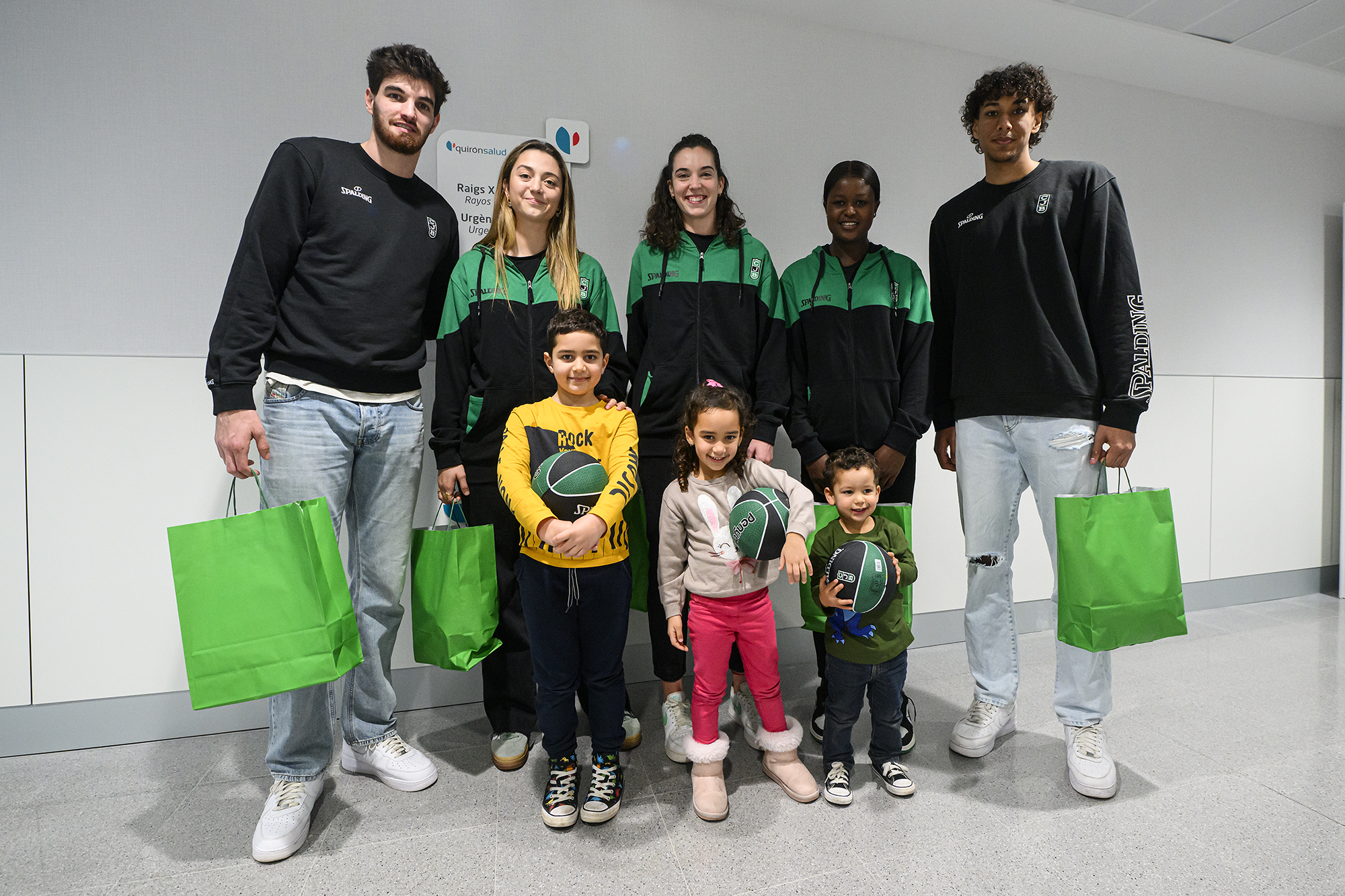 Els pacients de l’Hospital Quirónsalud Badalona han rebut aquest dijous, 4 de gener, la visita del President i dels jugadors i jugadores dels primers equips del Club Joventut Badalona. Busquets, Kraag, Segura, Cotano i Pouye, acompanyats pel President Morales, s’han avançat a l’arribada dels Reis d’Orient i han entregat regals als pacients de l’Hospital Quirónsalud Badalona per fer la seva estada a l’Hospital el més amable i nadalenca possible. Així mateix, els membres de l’equip verd-i-negre han volgut felicitar les festes i desitjar una ràpida recuperació als petits i grans ingressats en dates tan assenyalades. La visita dels jugadors i les jugadores ha estat una injecció d’alegria entre els pacients de l’Hospital. Olga Arcos, Directora d’Infermeria de l’Hospital Quirónsalud Badalona, afirma que: “a l’Hospital Quirónsalud Badalona treballem perquè els nostres pacients tinguin una experiència de màxima qualitat i, sens dubte, la visita dels jugadors i jugadores de la Penya ha contribuït a fer-ho possible”.