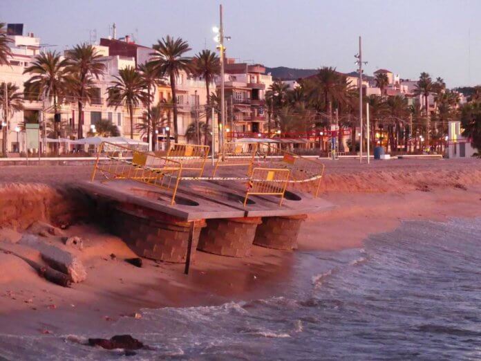 La platja de Badalona fa temps que està perdent sorra de manera accelerada, però durant els darrers dies, a la platja dels Pescadors, davant del carrer de Mar, s’ha descalçat totalment la base d’un parell de dutxes i ha quedat arran d’aigua. A més, molt a prop s’ha format un gran forat. Justament en aquest punt s’ha format un gran desnivell, entre la sorra i l’aigua. Tot i que durant els darrers dies no s’ha produït un gran temporal, la pèrdua de sorra ja és una evidència a la platja de Badalona des de fa temps. Foto: Núria Fañanas