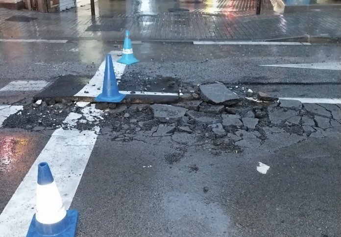 La tempesta d’aquesta matinada ha provocat l’aixecament de l’asfalt al carrer Ramon Llull, lateral de l’autopista, a l’altura del Passeig de la Salut. S’espera que durant el matí d’aquest dissabte es pugui reparar aquest tram, que aquesta hora està tallat al trànsit.