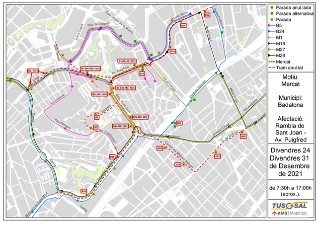 La Rambla de Sant Joan de Badalona restà tallada, aquest divendres 24 de desembre i també el 31 de desembre, per la instal·lació dels Encants dels divendres. El tall s’allargarà fins a primera hora de la tarda. La instal·lació del Campament Reial, al parc de Montigalà, indret on els Encants se situen cada divendres, ha fet canviar la instal·lació de les parades durant aquestes dues setmanes. El tall al trànsit de la Rambla de Sant Joan afecta el recorregut de diverses línies d’autobusos que realitzen per aquesta via. Els autobusos són desviats per diferents carrers, direcció a Sant Crist i Bufalà.