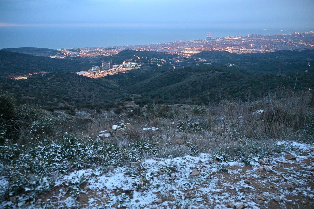 La neu acaricia Badalona amb una petita nevada a les parts més altes de la ciutat. Oriol Rodríguez