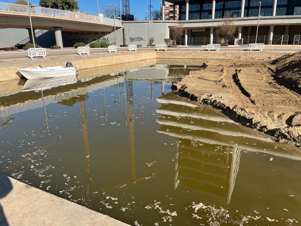 Continuen les obres al canal del Gorg: una barca al futur canal a causa de la presència d’aigües freàtiques