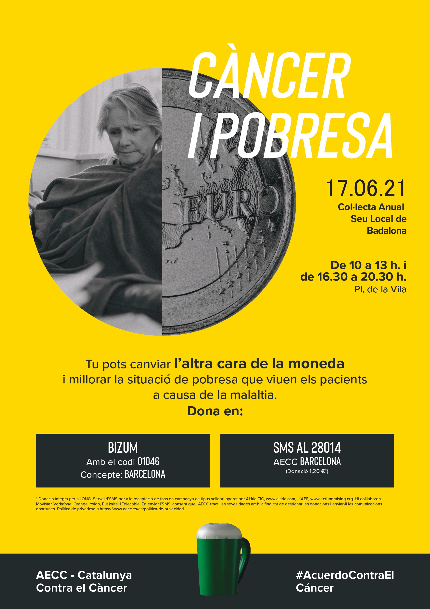 Aquest dijous, 17 de juny, se celebrarà, un any més, la col·lecta anual de l’Associació Espanyola Contra el Càncer-Catalunya amb la presència d’una carpa situada a la plaça de la Vila de Badalona, en horari de 10 a 13.30 hores i de 16.30 a 20.30 hores. Durant aquest esdeveniment s’informarà de la presència de la nova seu a la ciutat i els avantatges que pot suposar per a la ciutadania de Badalona.