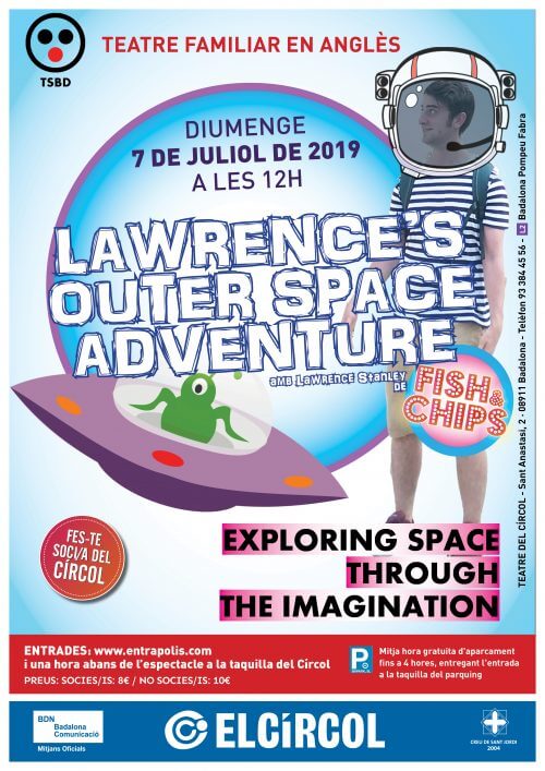 Aquest diumenge, 7 de juliol, el teatre del Círcol tanca temporada i ho fa amb una obra amb anglès. L’actor britànic afincat des de fa temps a Catalunya, Lawrence Stanley, portarà a Badalona “Lawrence’s outer space adventure”, una obra de teatre familiar en anglès. L’espectacle començarà a les 12h i les entrades les podeu adquirir a la mateixa taquilla del teatre.