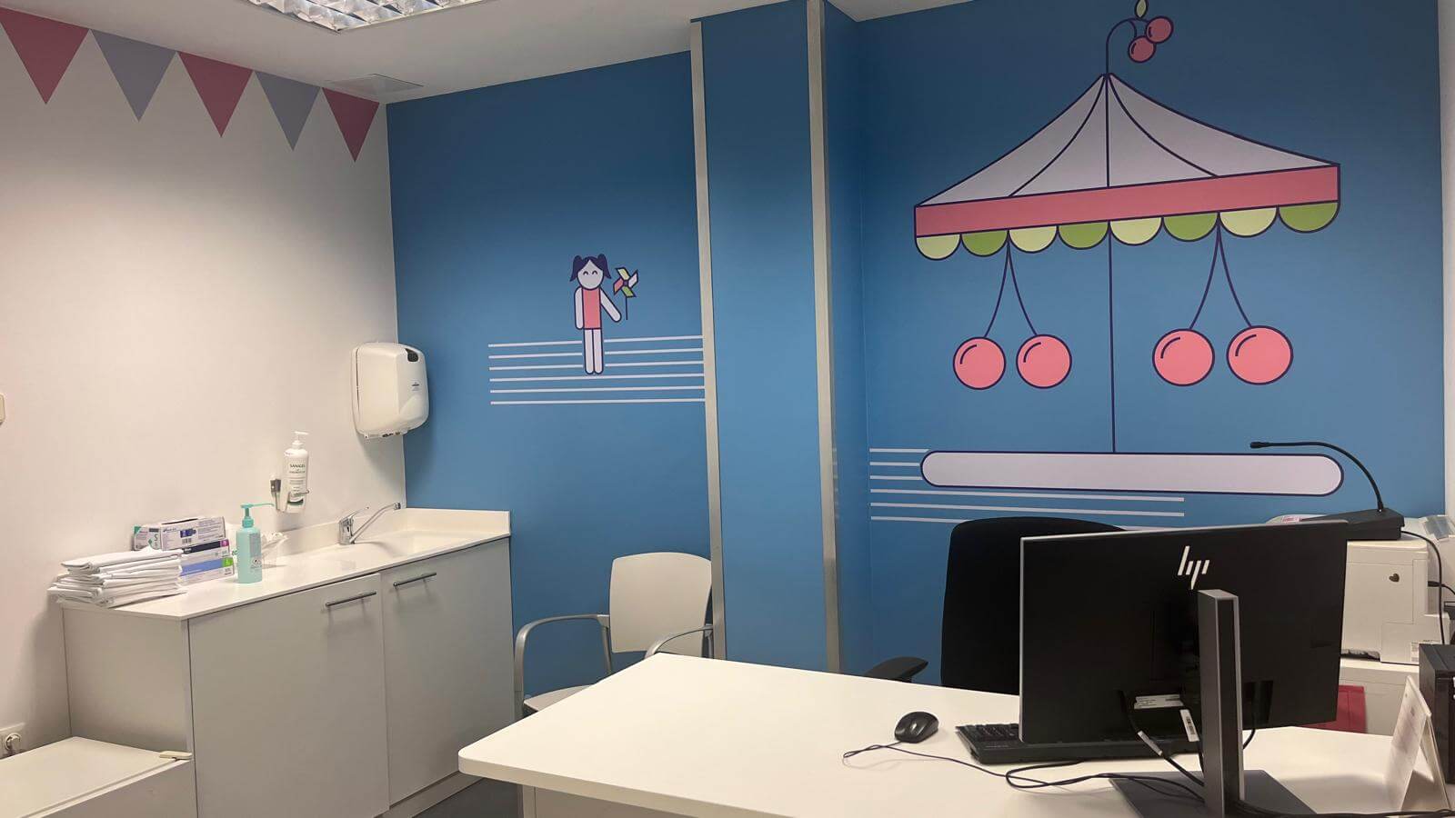 Les consultes de Pediatria de l’Hospital són des d’avui un espai més innovador i acollidor gràcies a un projecte d’humanització enfocat en la promoció d’una alimentació saludable. Aquest nou entorn està dissenyat per fer que les visites mèdiques siguin més atractives, properes i divertides i, a la vegada, fomentar una alimentació saludable entre els nens i nenes. Amb tot això, s’ha convertit l’àrea de consultes en un parc d’atraccions on les fruites són les veritables protagonistes. Cada consulta s’ha decorat amb imatges colorides i divertides que representen un món màgic on les fruites esdevenen les atraccions del parc. Així, els petits pacients poden gaudir d’un entorn que no només és visualment estimulant, sinó que també els ensenya la importància de mantenir una dieta equilibrada i nutritiva. El parc d’atraccions saludable inclou propostes de tota mena, des d’espais comuns on les fruites es mesclen per crear atraccions a mode de macedònies, a cada una de les consultes, que correspon a una sola fruita que es converteix en una atracció concreta: cireres que son carrusels, llimones que són nòries, o bròquils que són tobogans.