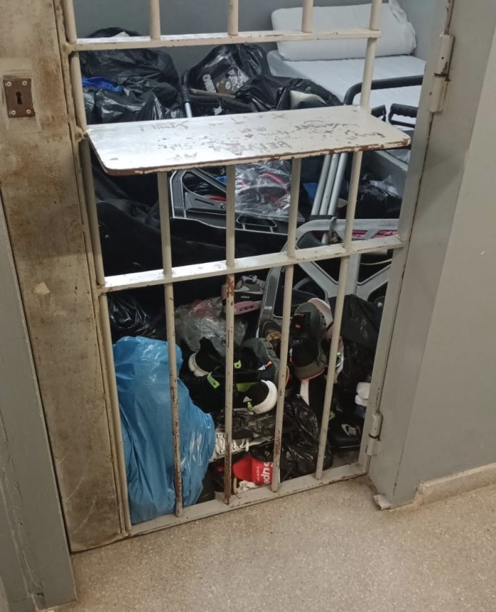 El sindicat SIP-FEPOL ha denunciat públicament que les cel·les de la comissaria de la Guàrdia Urbana, al Turó d’en Caritg, estan plenes de material intervingut pel col·lapse del magatzem que el cos disposa al mateix recinte. Des de fa setmanes, el material que s’intervé en operacions policials ocupa espais impropis. Actualment, hi ha objectes procedents del mercat de la misèria en despatxos i fins i tot en algunes cel·les de la comissaria. Dels cinc calabossos que hi ha, n’hi ha dos ocupats en funcions de magatzem. Durant els darrers dies, segons expliquen fonts policials, s’han hagut d’encabir dos detinguts en la mateixa cel·la.