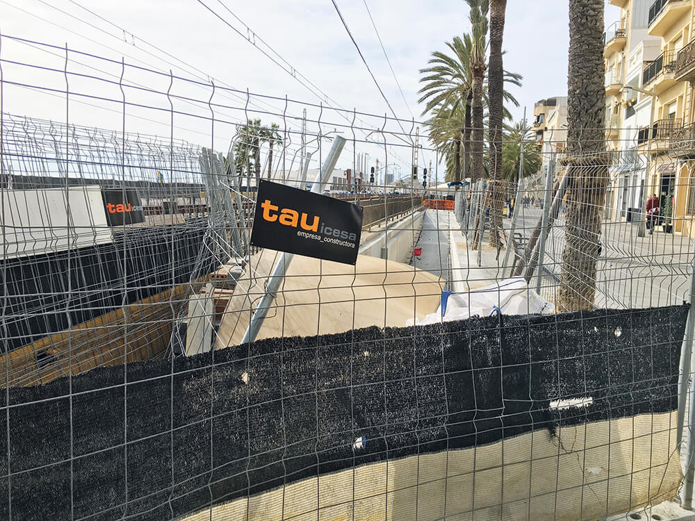 Ja fa més tres mesos que els treballs del pas inferior a la via del tren entre Santa Madrona i el passeig Marítim estan aturats perquè l’empresa adjudicatària va entrar en fase de liquidació. El govern local va anunciar, a través d’una nota de premsa, que l’empresa constructora faria el manteniment fins el dia 16 de gener. Passat gairebé un mes d’aquesta data les obres estan totalment abandonades. Algunes de les tanques han estat tombades i les deixalles s’escampen per tot el pas. La paralització de les obres han provocat les queixes de veïns i també els propietaris dels bars del voltant. Els treballs de remodelació del pas van començar el passat 15 de juny.