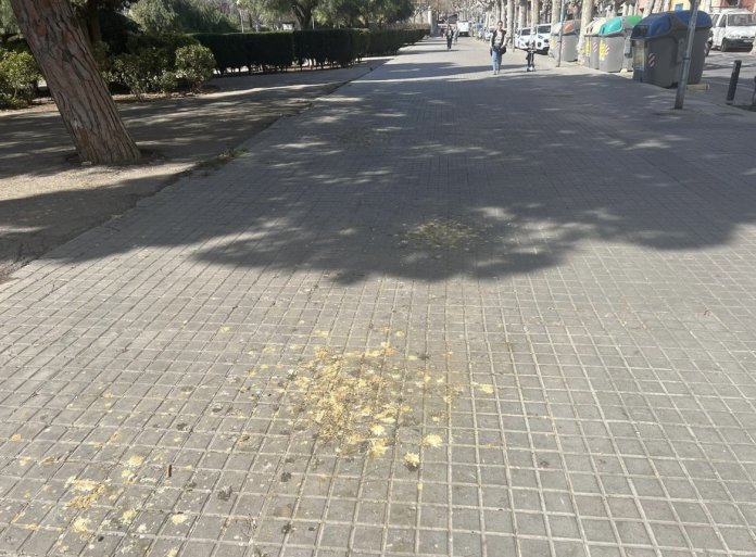 Segur que durant les darreres setmanes heu vist, a molts carrers de Badalona, un augment dels excrements de color groc. El color és especialment cridaner, el groc, molt diferent del que tenen habitualment la majoria de deposicions d’ocells, més aviat blanquinoses, com per exemple els coloms. En alguns carrers, com per exemple Francesc Layret, els excrements grocs estan sobretot sota els arbres i en algunes ocasions cauen sobre les persones. L’origen d’aquests excrements són sobretot les tórtores turques o els tudons. El perquè de la concentració més elevada d’excrements sota dels arbres acostuma a ser pel fet que aquests ocells descansen a les capçades dels arbres i són aquí on defequen. Un dels arbres preferits per aquests ocells són els plàtans, molt abundants en alguns carrers, com l’Avinguda Martí i Pujol. En qualsevol cas, segons els experts, aquests animals no estan malalts sinó que són les caques que fan habitualment.